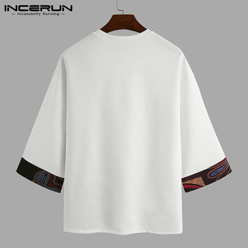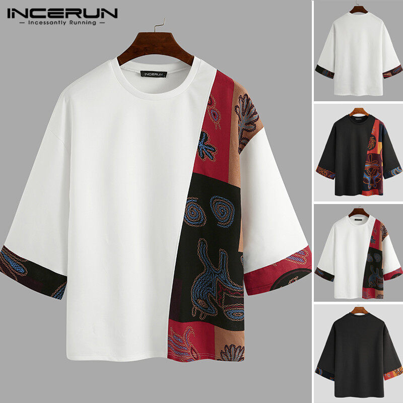 Medussa INCERUN Summer Mens 3/4 Sleeve T Shirt Summer Tops Floral Tee Tops