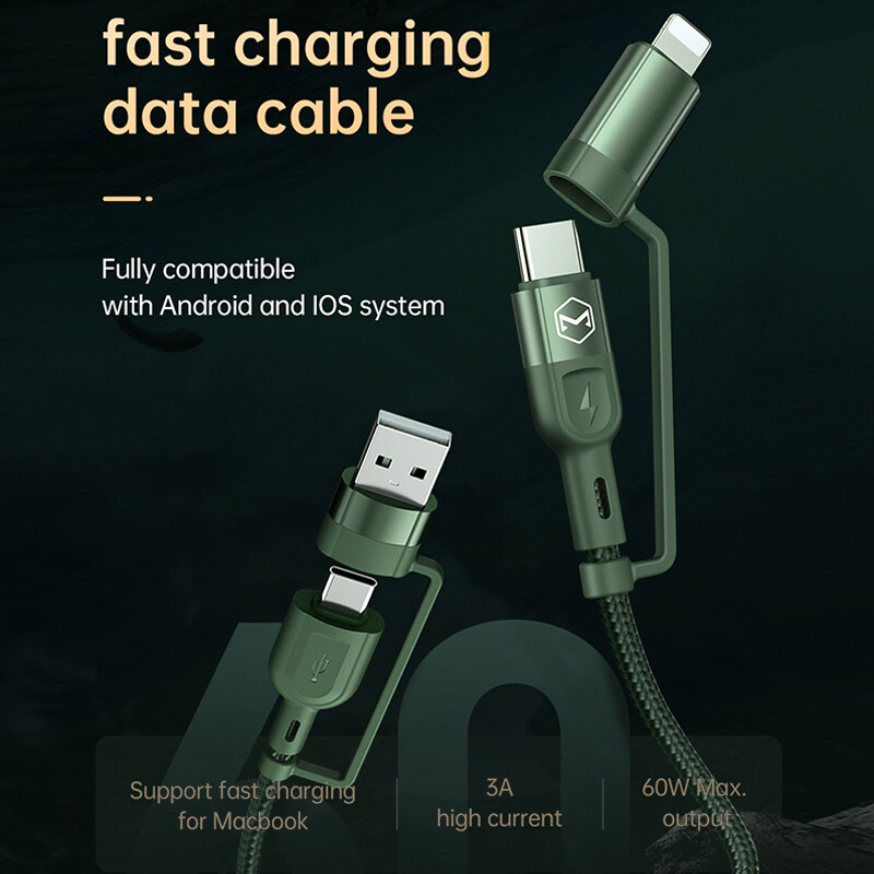 Mcdodo USB-A Type-C Charging Cable 4-in-1 PD/Lightning/Type-C/iPhone data cable fast charging for iphone 12 pro max iphone 11 pro Huawei Samsung Xiaomi 120cm