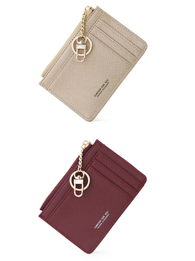 Main Features: Logo: Forever For You Size: 12cm*8.5cm*0.3cm Weight: 50g/pcs High Quality PU Leather Fashion Zipper Design Cross Pattern With Card holder,Coin holder Sturdy Metal Buckle High quality zip hardware Precision Sewing Line Best gift choice for your family,lover and friends 6 colors for you choice
