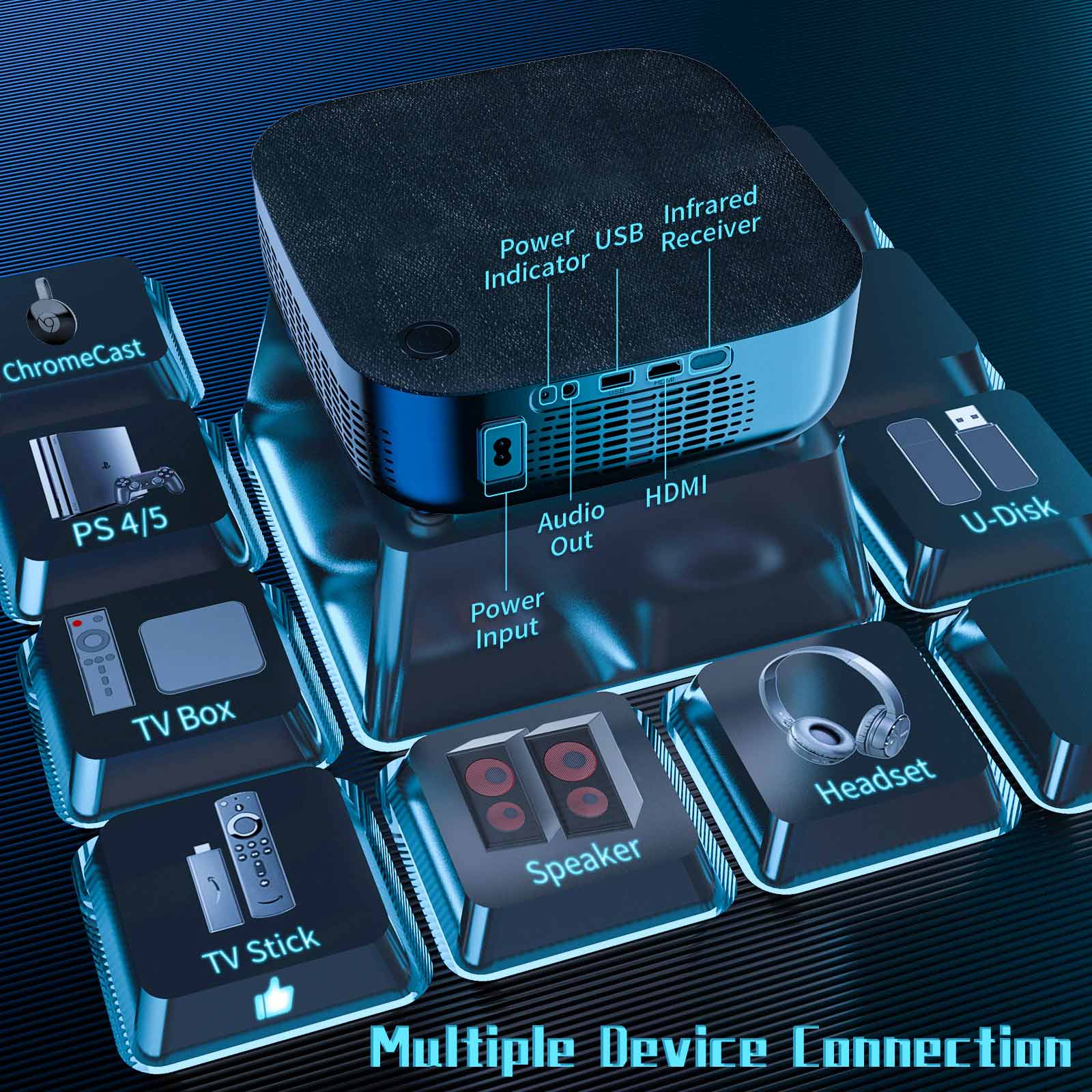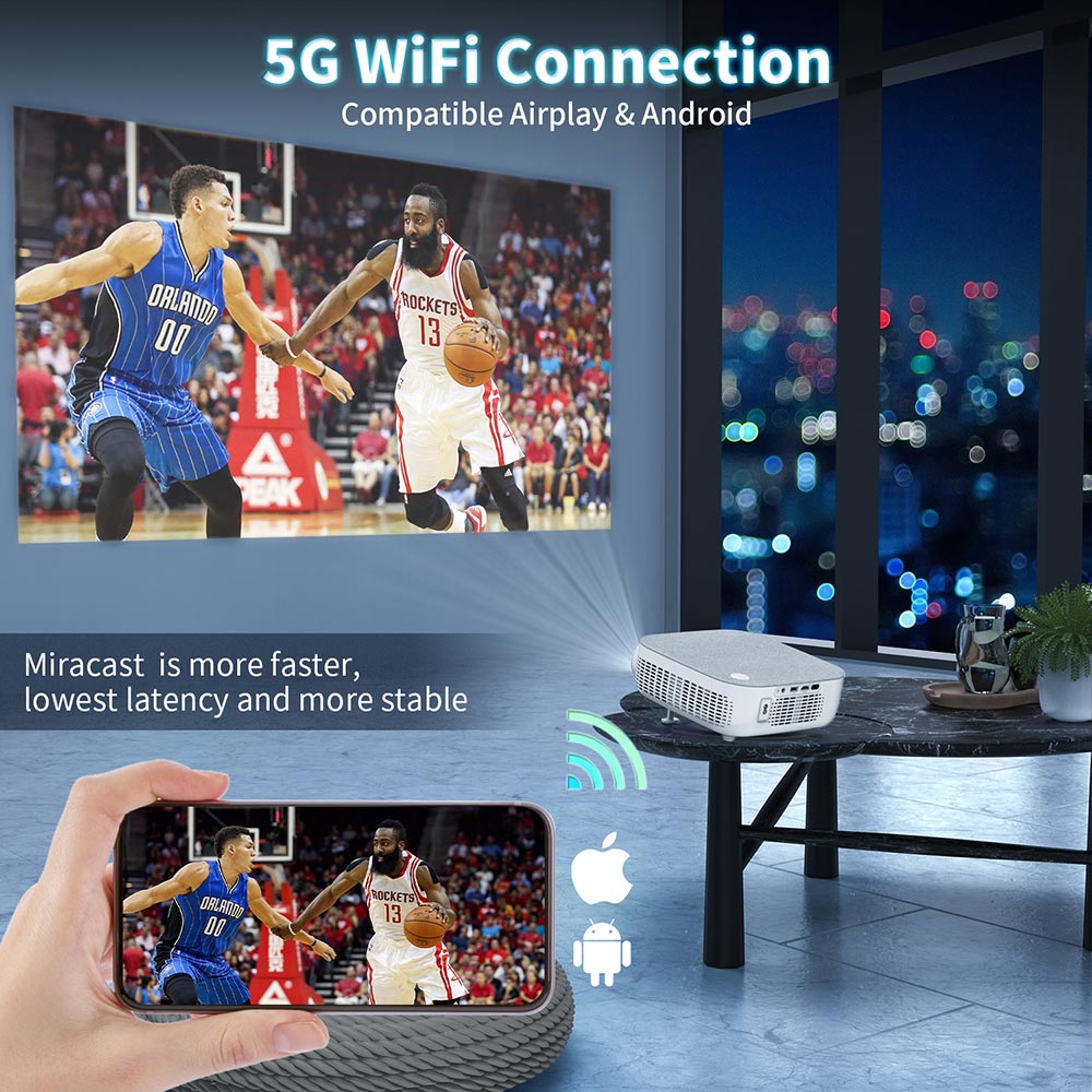 STANSIO REO5 WiFi Wireless Mirroring Airplay Phone LED Mini Projector 1080P 3000 Lumens 4K Multi-media HDMI USB LCD Projectors