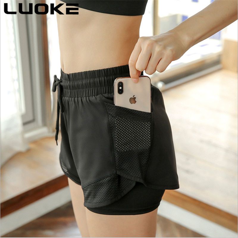 LUOKE Yoga Pants for Women 运动套装女 Two Pockets Exercise Tight Gym Cycling Sports Shorts Jogging Short Pants for Women sport pants for womenRunning 2 In 1 Shorts