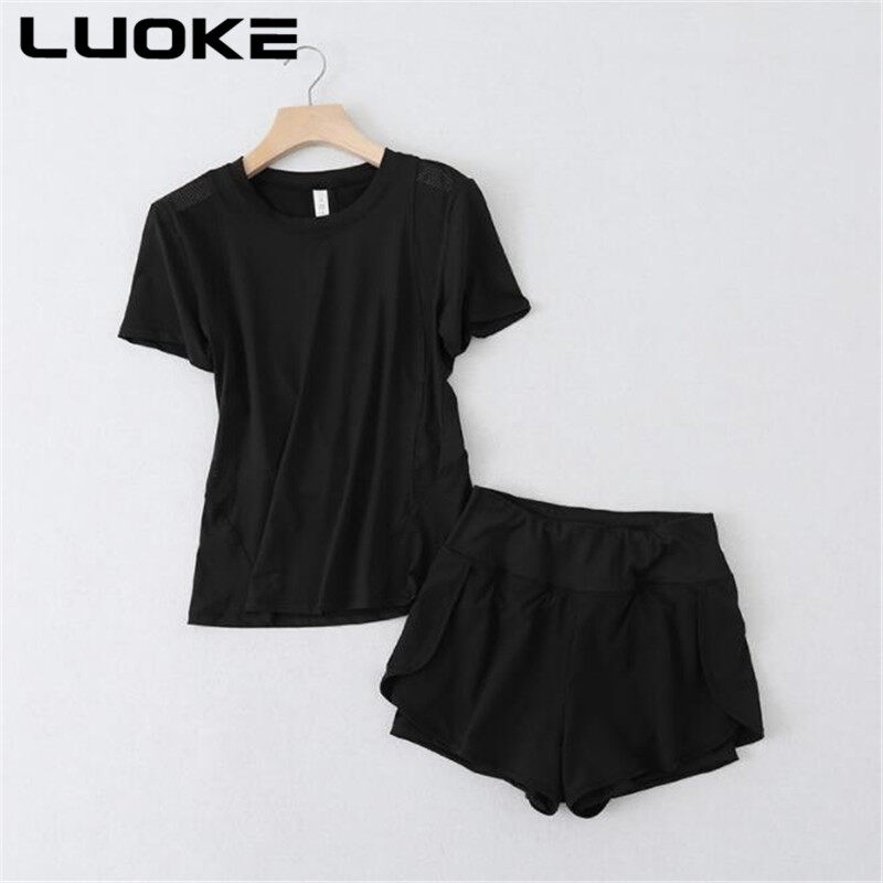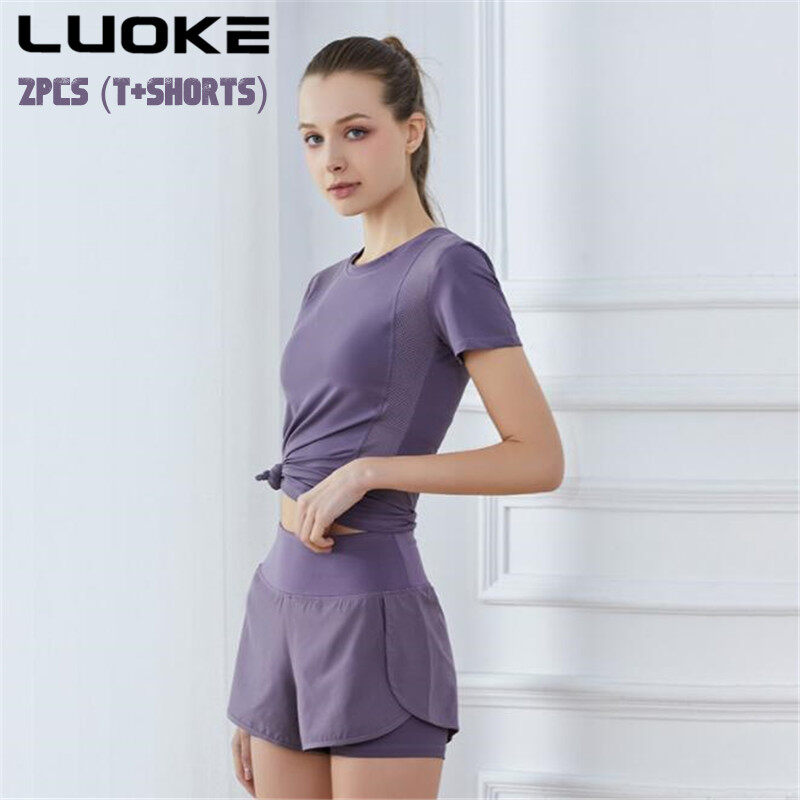 LUOKE Yoga Pants for Women 运动套装女 Two Pockets Exercise Tight Gym Cycling Sports Shorts Jogging Short Pants for Women sport pants for womenRunning 2 In 1 Shorts