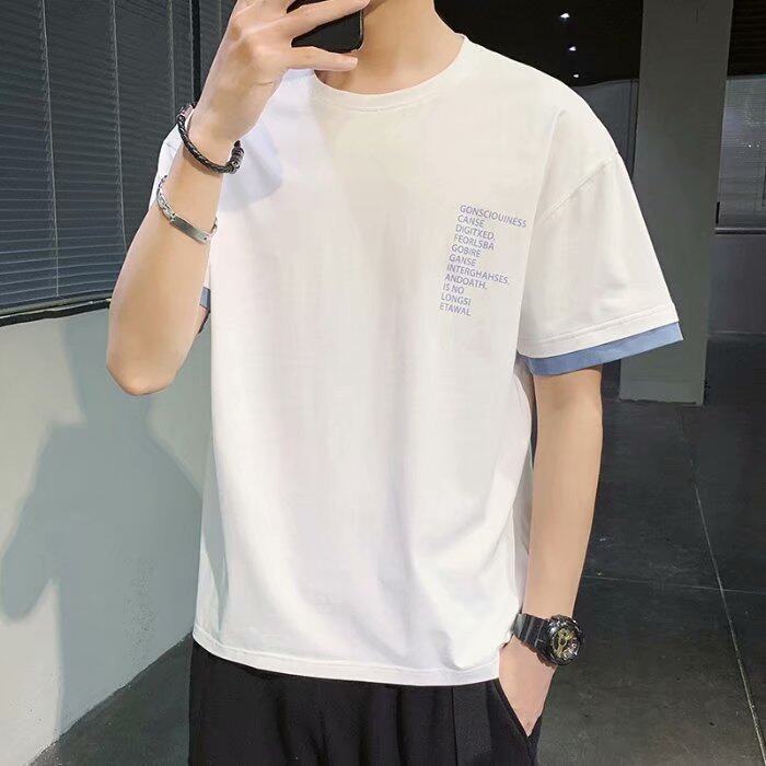 t shirt Men New Korea Style Plus Size Letter Print t-shirts Clothes Fashion Tops Causal Short Sleeve Oversize Korean Style Tees