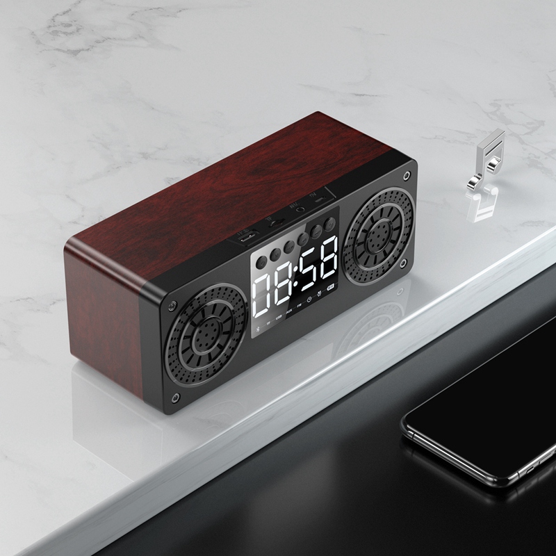 Stereo Subwoofer Bluetooth Speaker FM Radio Portable Speakers Mp3 Play Super Bass Loudspeaker Computer Column Brown