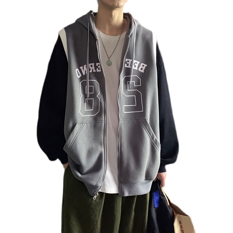 Spring and Autumn Ins Super Popular Trendy Versatile Fake Two Pieces Cardigan Sweater Men's Korean-Style Student Stitching Hooded Sportswear