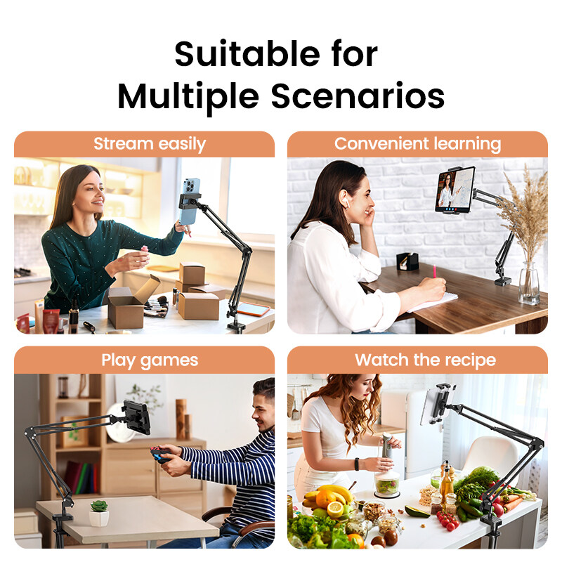 UGREEN Phone & Tablet Stand 360 Rotating Flexible Long Arms Tablet Stand Holder For 4-12.9'' Desktop Bed Lazy Metal Bracket Clamp for Samsung Vivo Xiaomi iPhone iPad Air Kindle E-Reader