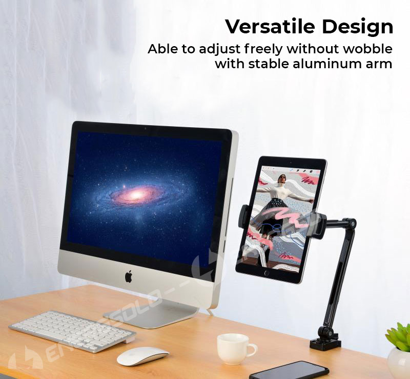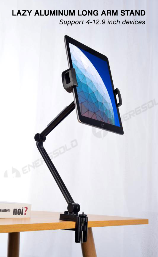 Energsolo Long Lazy Arm 360° Aluminum Adjustable Mobile Tablet Phone Holder ( 4 - 12.9 devices tablets ) Clamp Mount Table Stand