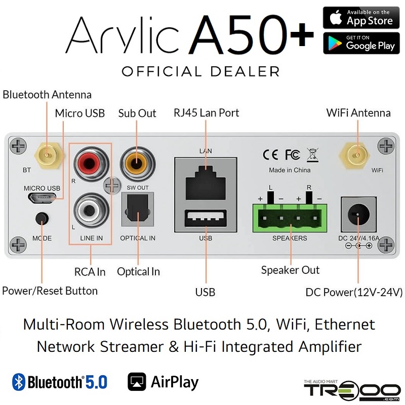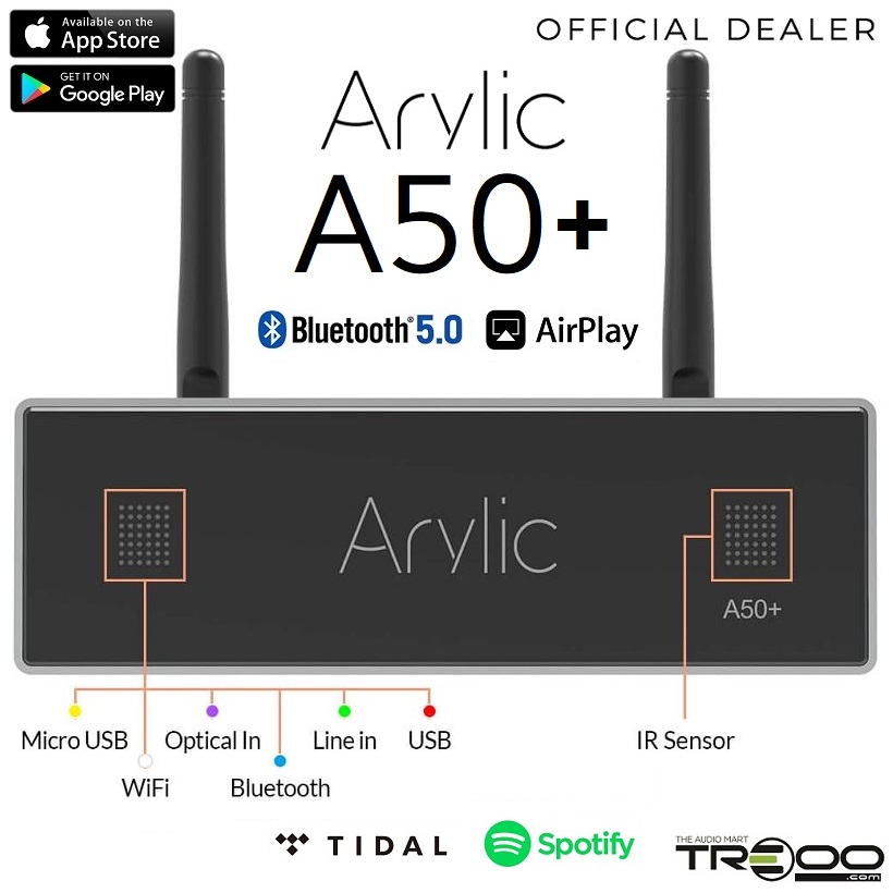 Arylic A50+ Multi-Room Wireless Bluetooth/WiFi/Ethernet Network Streamer, USB DAC & Hi-Fi Integrated Amplifier