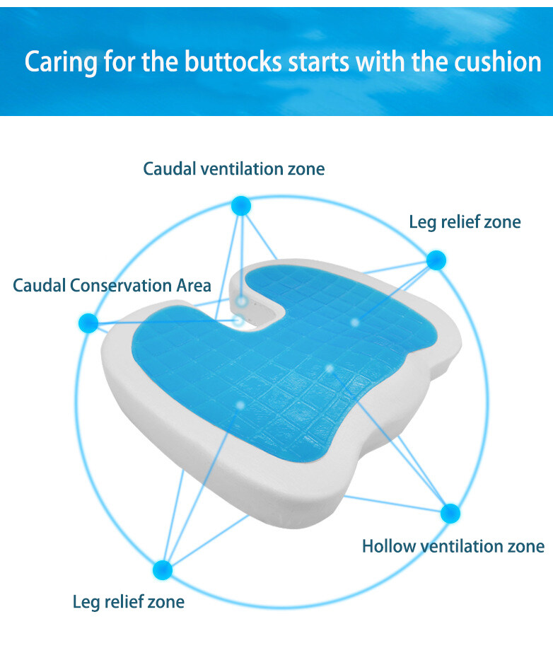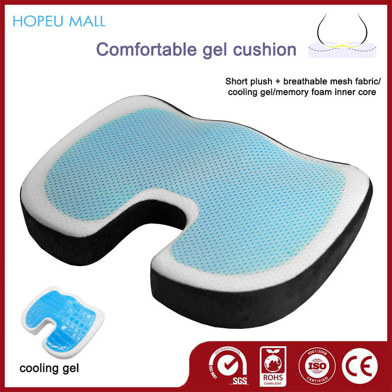 This Chair Cushion is designed for your needs. Memory foam cushion which can increase your comfort when sitting. Cooling gel makes you more comfortable Product Features: - High Quality Fabric, soft and comfortable, safe and not toxic. - Memory Foam has a very high tensile strength and is extremely durable - Gel cushion can disperse heat, so that you can be cool and comfortable in summer. - Features a specially-positioned U-shaped cut-out that gently suspends your tailbone to relieve pressure. - Unique shape will relieve pressure on your back and hips while providing a comfortable place to sit for long periods. - Ladies use U terminal backwards, men use U-end forward. - The cover is machine washable and can be removed using the zipper for easy cleaning. More Reasons Why You Need This Product: * U-shaped Empty Slot - The back of the spine away from the oppression of seat, alleviate the pressure of the tailbone. * Ergonomic Coccyx Design - Relieves painful pressure on your tailbone, Encourages a good spine position. * Natural Cervical Curve - Natural groove curve design, to promote blood circulation of legs. * High and Low Design - Contoured molded seat cushion that evenly distributes body weight.