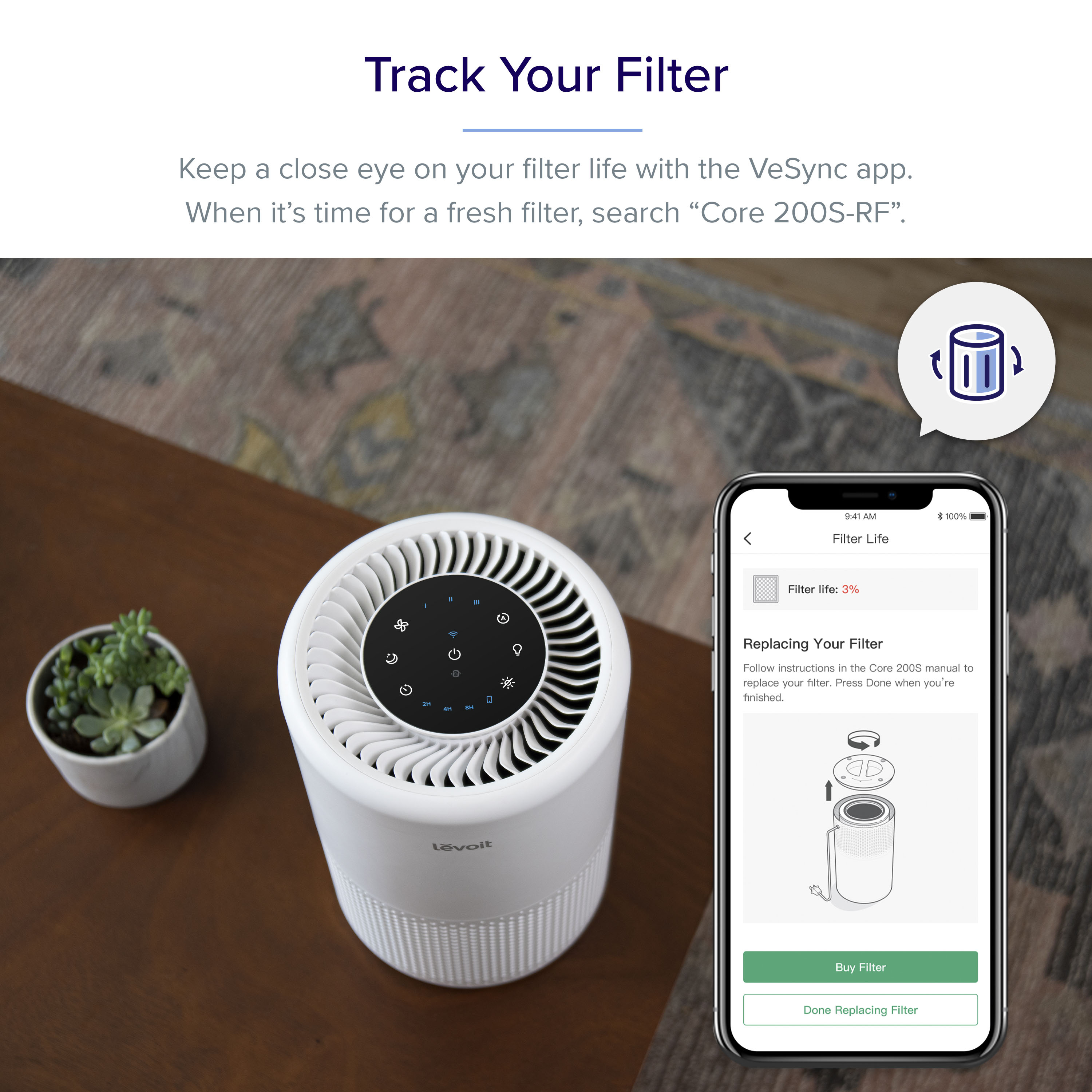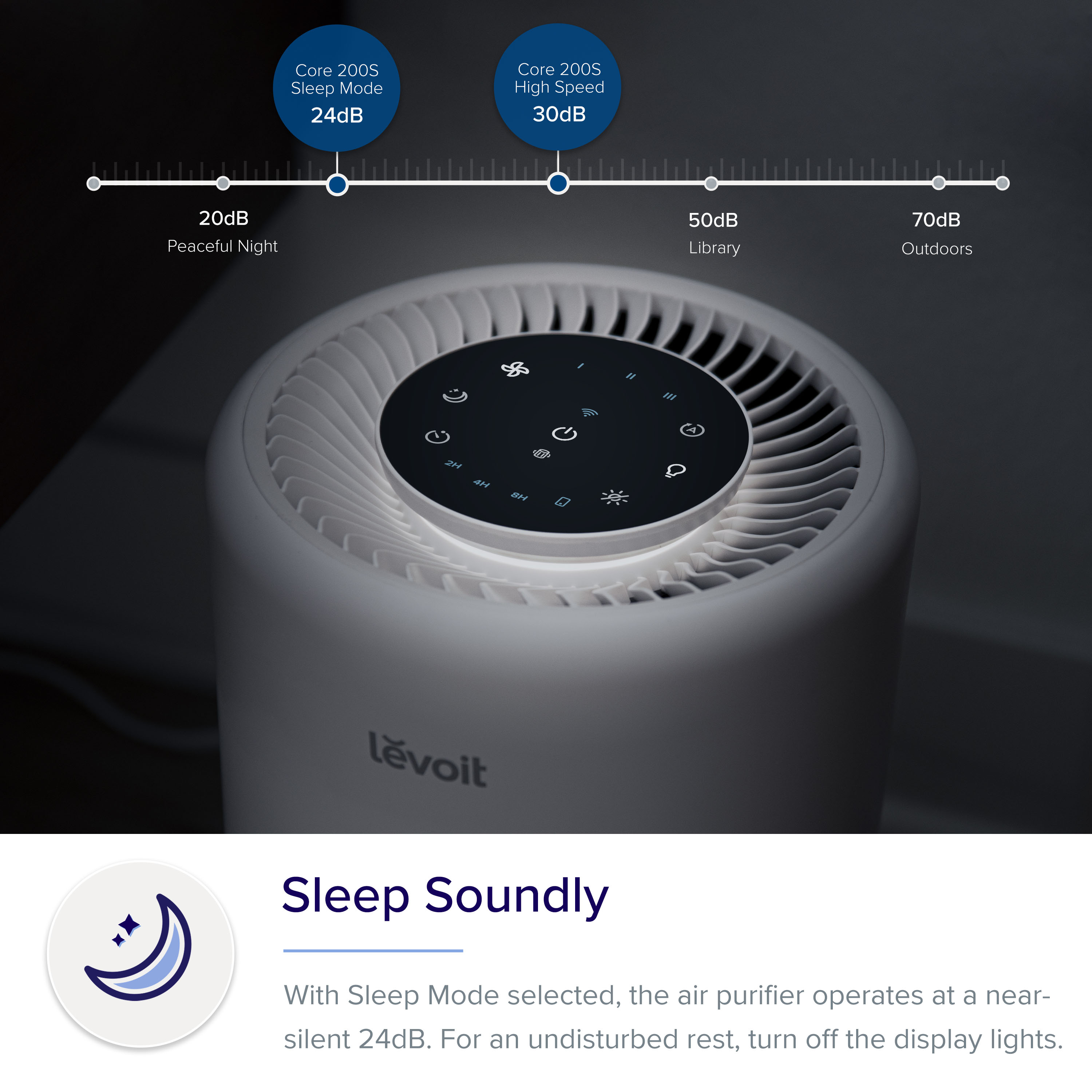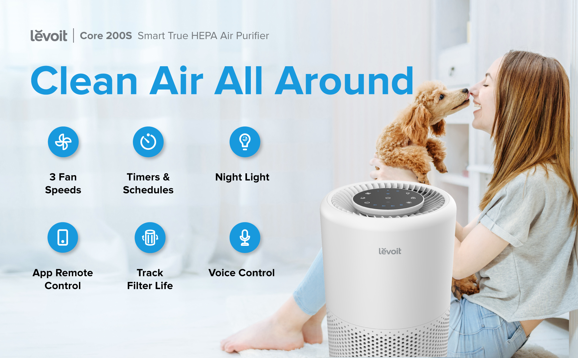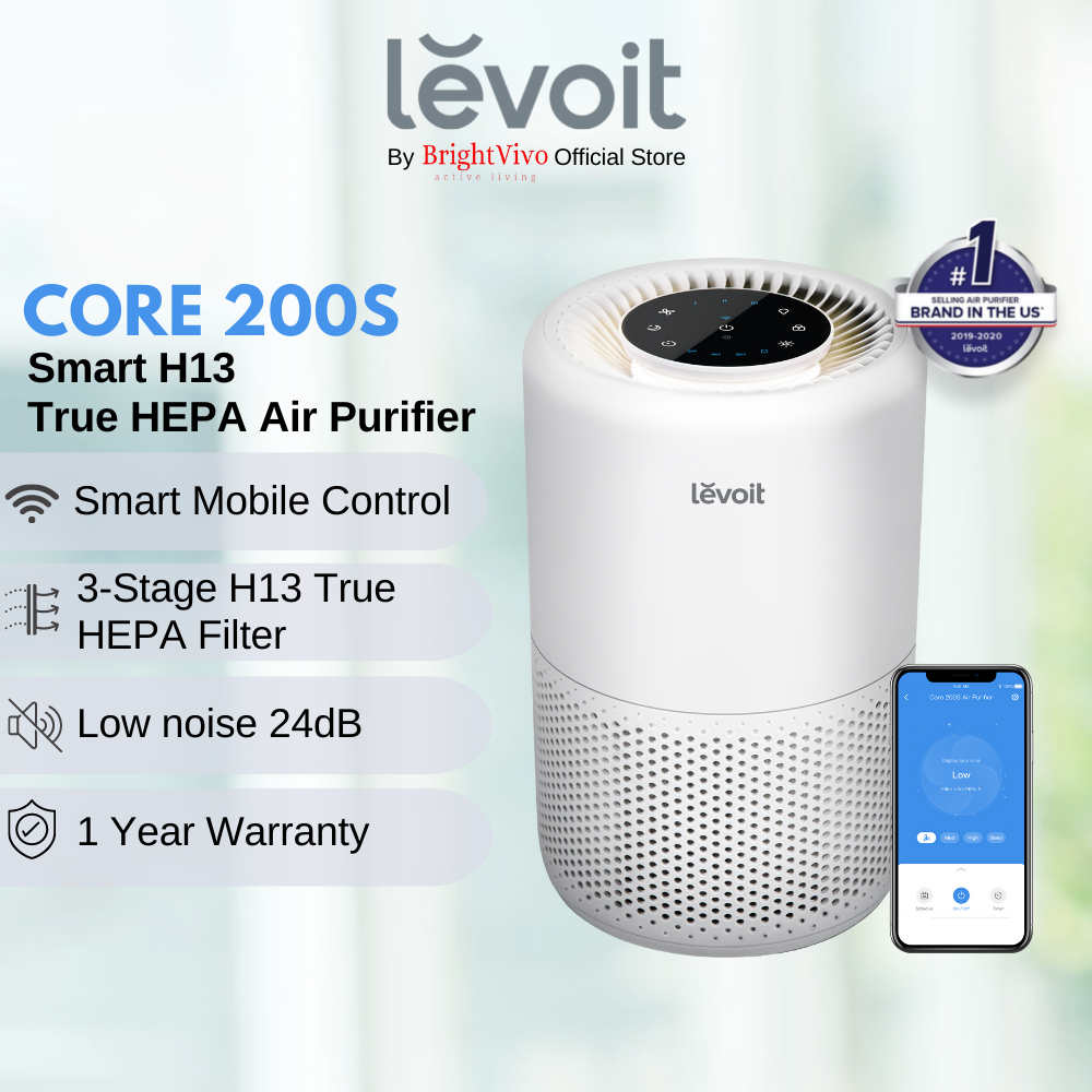 Levoit Core200S Smart WiFi Air Purifier for Home, Alexa Enabled H13 True HEPA Filter for Allergies, Pets, Smokers, Smoke, Dust, Pollen, 24dB Quiet Air Cleaner for Bedroom with Display Off Design - Bri