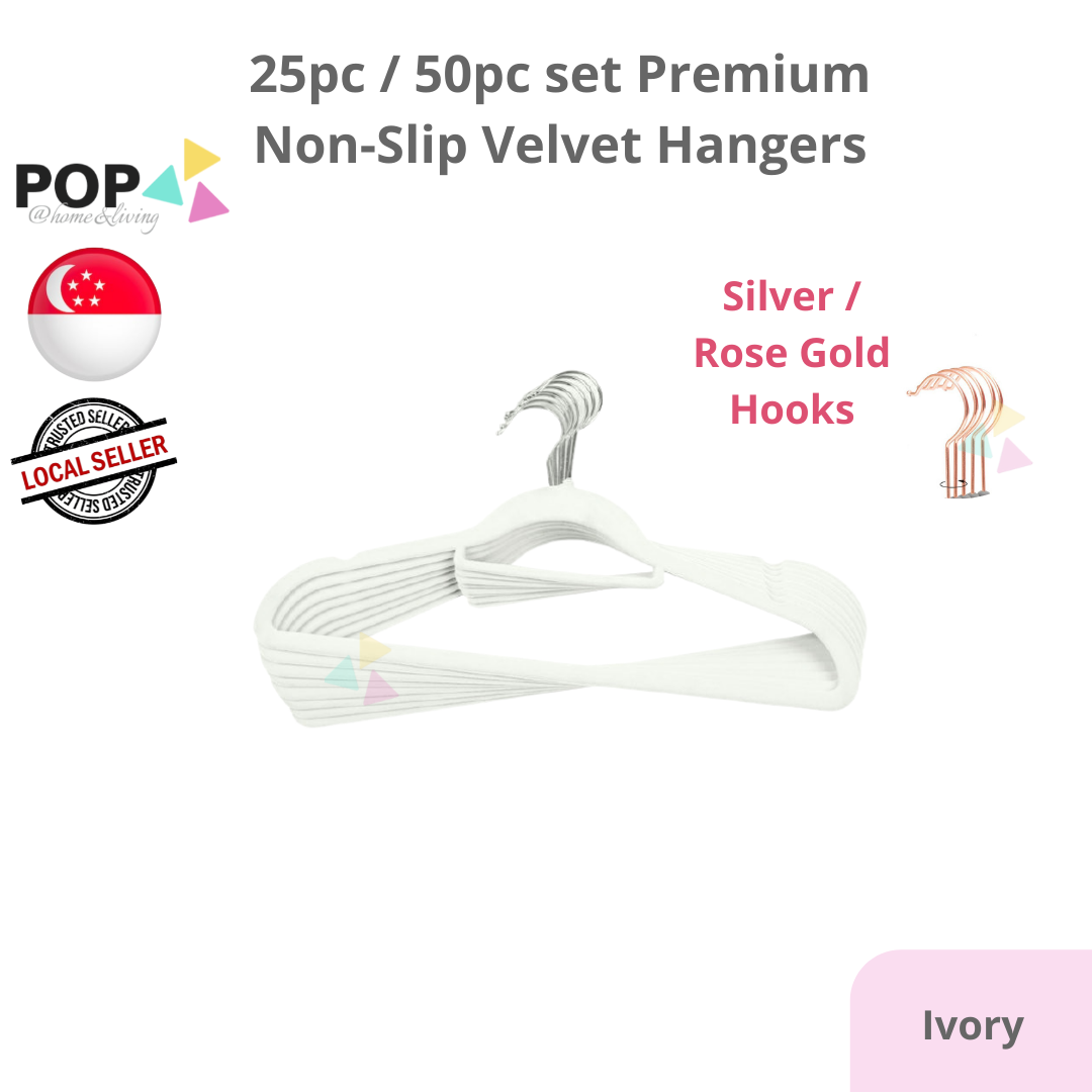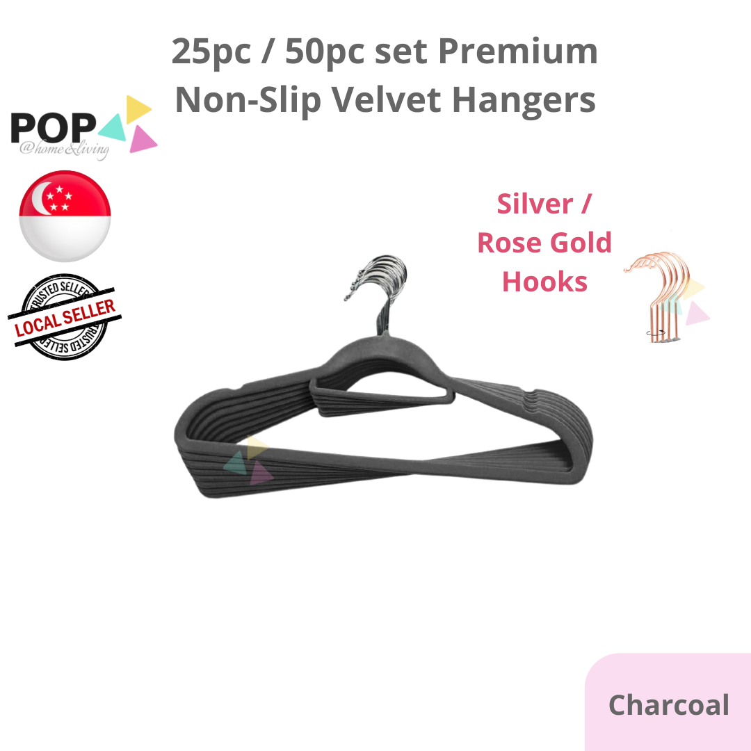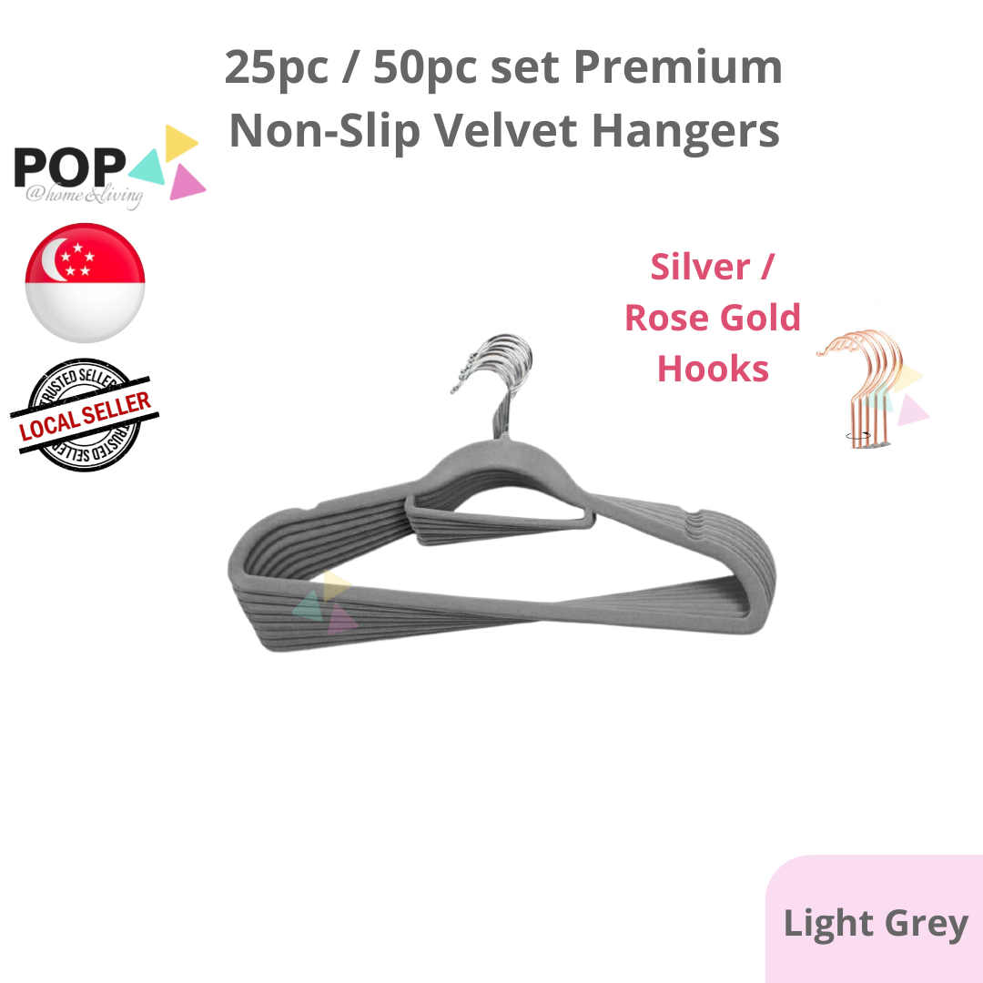 25 / 50 PC SET Rose Gold Silver Premium Non-Slip Velvet Clothes Hanger Slim Pink White Black Grey Anti-Slip Hangers Wardrobe Thin Closet Laundry Organiser Organizer CNY Spring Cleaning Raya Space Save