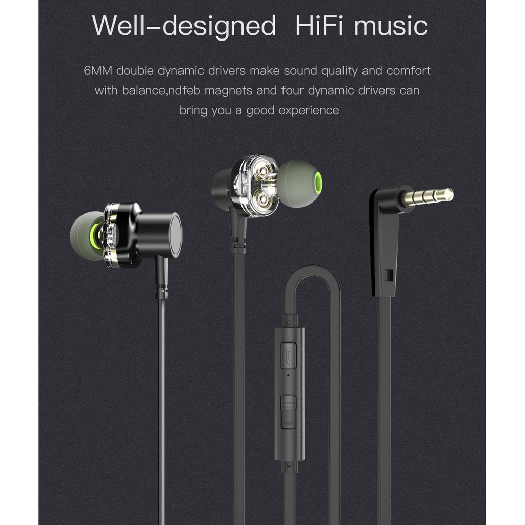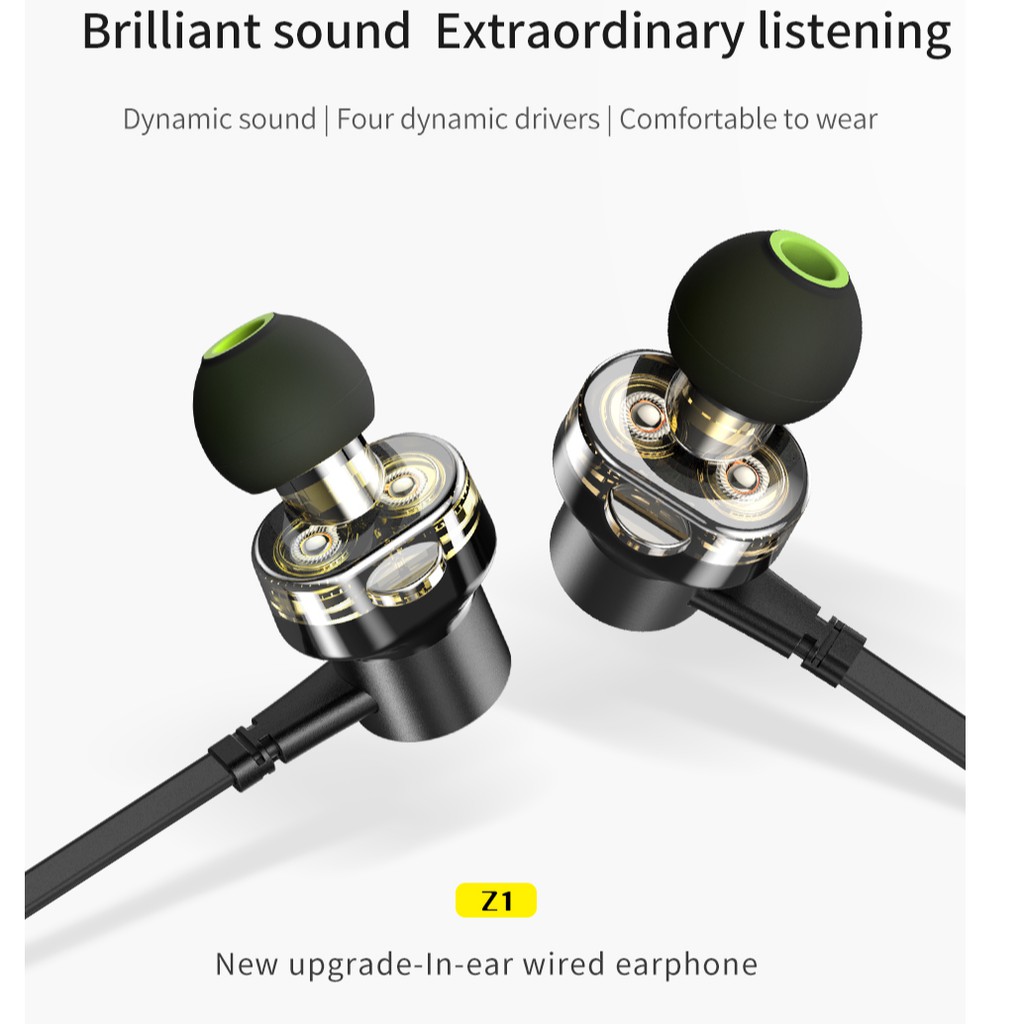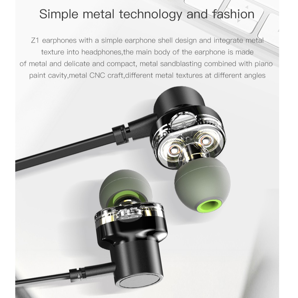 AWEI Z1 Wired Earphone Dual Driver Headset Double Moving Subwoofer Sport Bass Sound Earphones With Mic For Xiaomi Huawei iphone