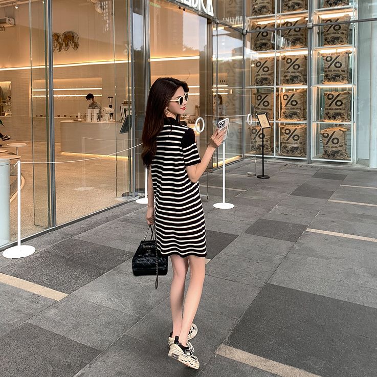 Design highlights: This striped knitted fabric dress is soft, breathable and stretchy~