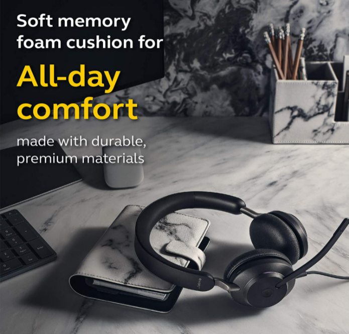 Incredible noise isolationPut on your Evolve2 40 and feel the noise around you instantly fade. Memory foam oval ear cushions and pioneering new angled design give you passive noise cancellation like you’ve never experienced.