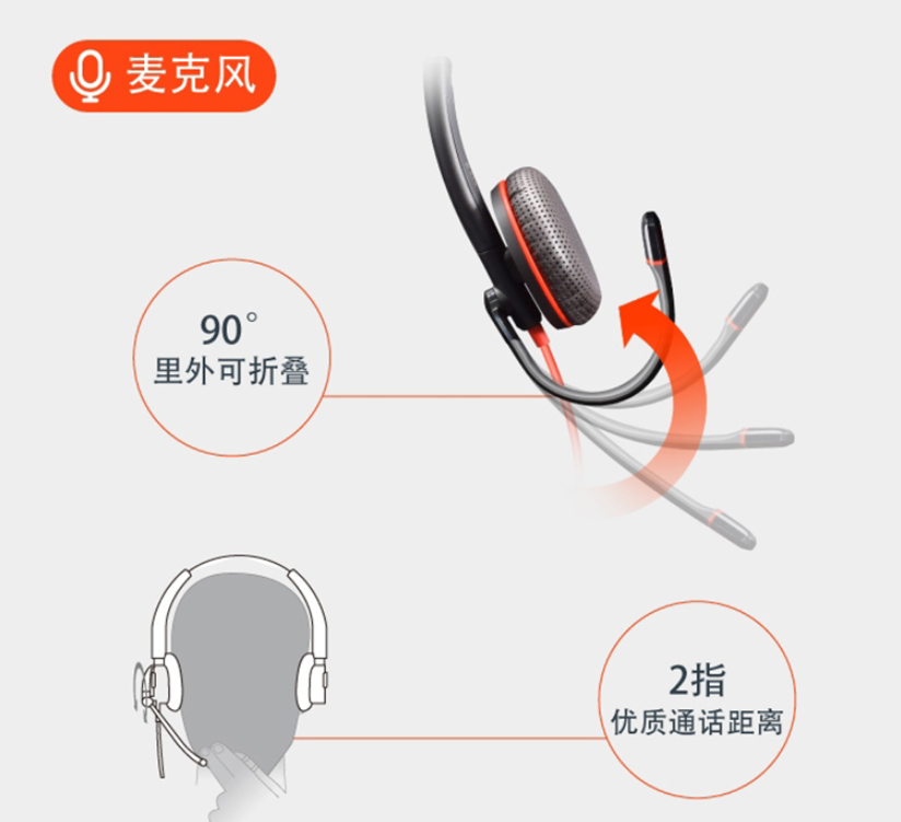Plantronics Blackwire C3225 Wired Noise Reduction Headset USB/3.5MM/USB-C Interface Wired Headphone