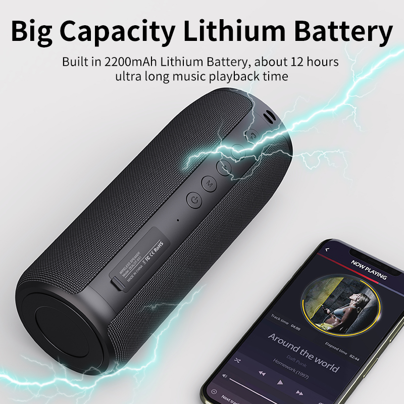 Product Specifications:Bluetooth Version: bluetooth 5.0Transmission Range: 10 to 15 metersRated Power: 5W X 2SNR: >=90dBFrequency: 100Hz-20KHzDistortion: < 1%Working Voltage: 3.7VCharing Voltage: DC 5VBattery Capacity: 2200mAhCharging Time: about 2.5 hoursPlayback Time: about 10 to 12 hoursStandby Time: >= 30 daysCharging Port: Micro USBMicro SD playback: supportAUX Line-in playback: supportUSB Flash Drive Disk Playback: supportSpeaker Dimensions: 75 x 75 x 185mmProduct Weight: about 500gWhat's in the box:1 x bluetooth speaker1 x charging cable1 x lanyard1 x user manual