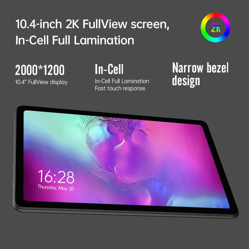 Alldocube iPlay 40H has a 10.4-inch 2000x1200 resolution 2K FullView screen, wide-angle view and gorgeous high definition, delivering picture-perfect visuals. 7.8 mm narrow bezel design allows for a higher screen-to-display ratio. Moreover, it brings fast touch response experience, making every touch pleasurable.