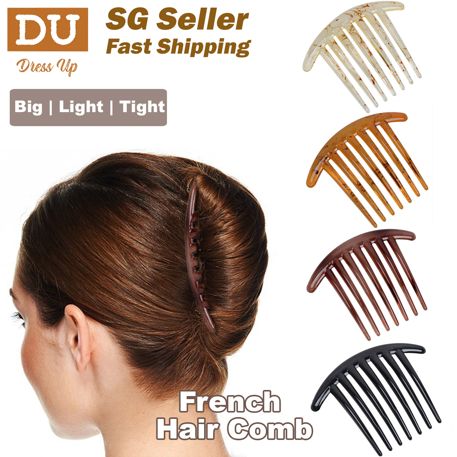 [SG | Extra Firm] 10cm Large Bar French Pleat Hair Style Hair Comb, 7 Teeth Elegant Stewardess Hairstyle Chignon Hair Comb
