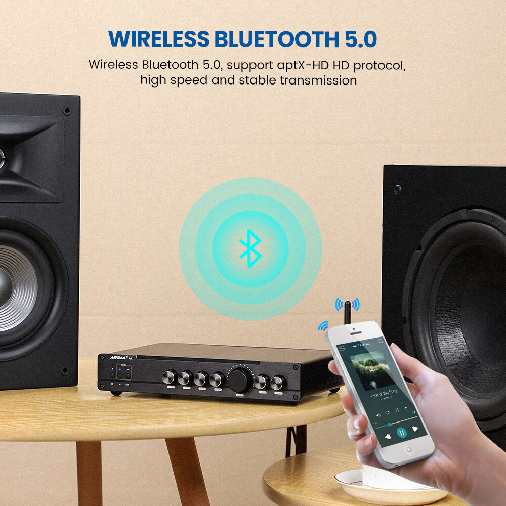 Multiple inputs for different purposes: with Bluetooth 5.0 / coaxial / optical three digital inputs and RCA input, strong compatibility and works perfectly with most home audio devices.