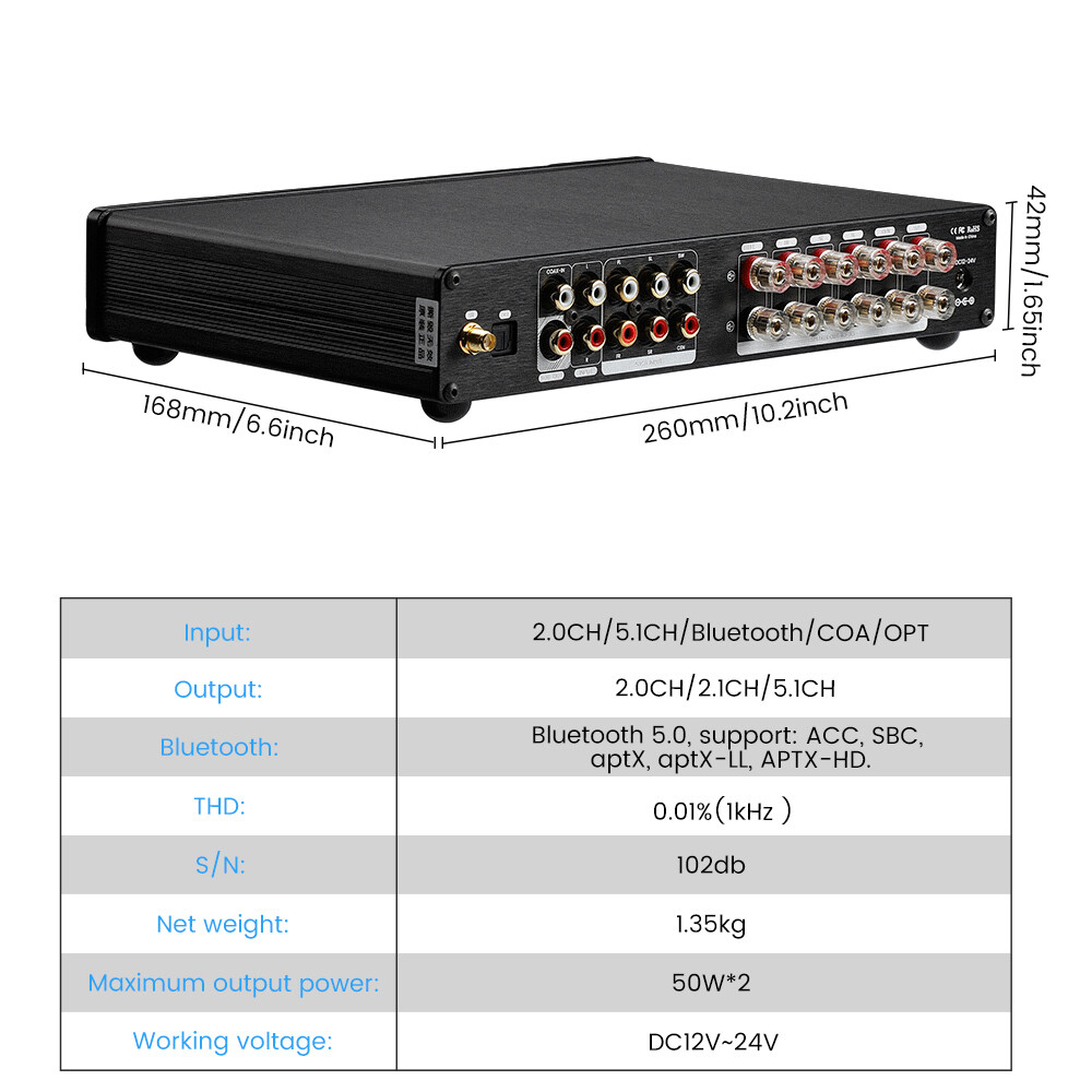 Audio input: Bluetooth/Coaxial /Optical/ 2.0 Channel RCA / 5.1 Channel RCA
