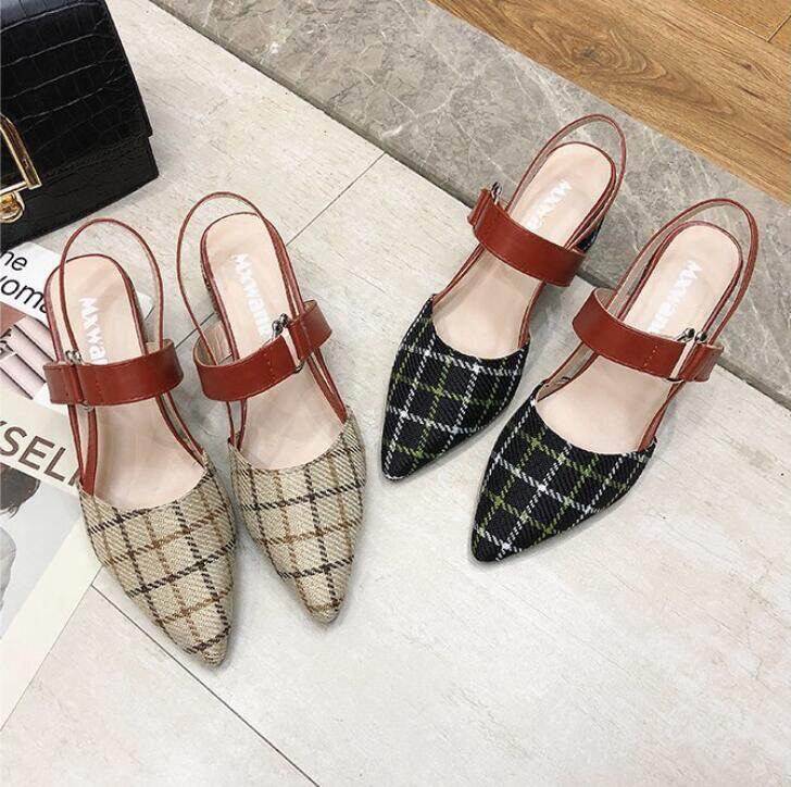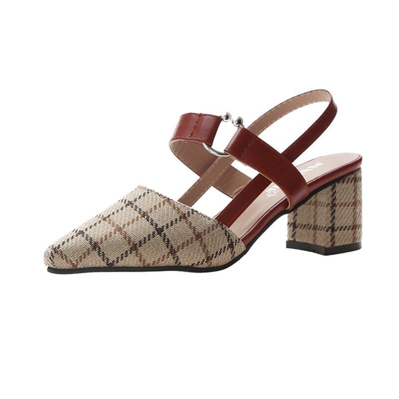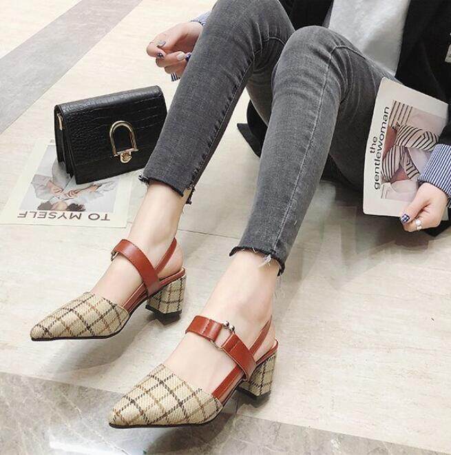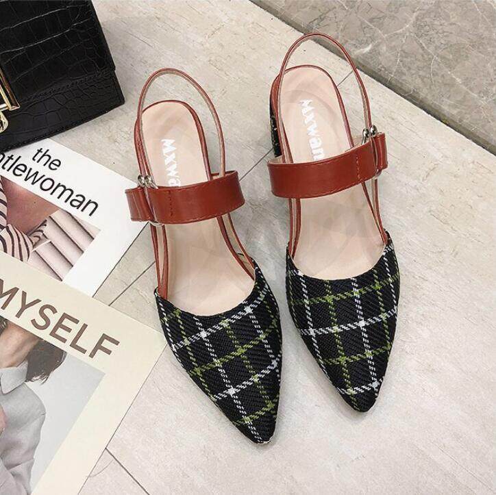 Thick-heeled Baotou High-heeled Sandals Shoes Pointed Mary Jane Women's Shoes