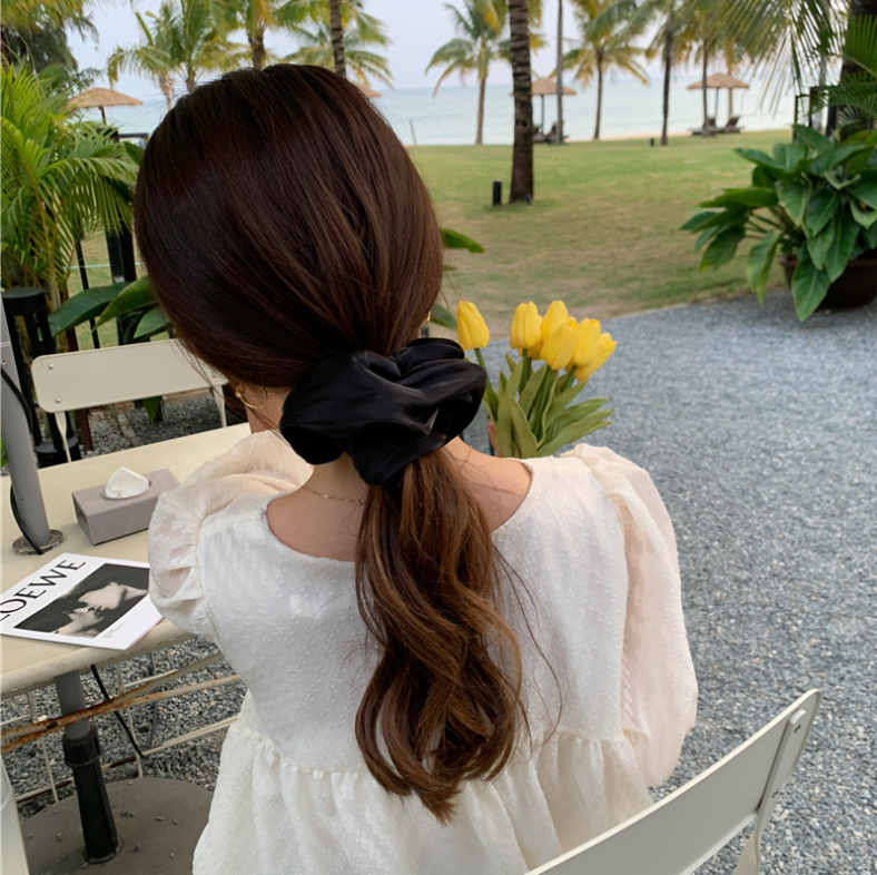 [SG | Large & Fluffy] Vintage BIG Satin Scrunchies Women Hair Ties - Big Scrunchy Hair Bands Elastic Hair Accessories Soft Large Scrunchies For Girl Women