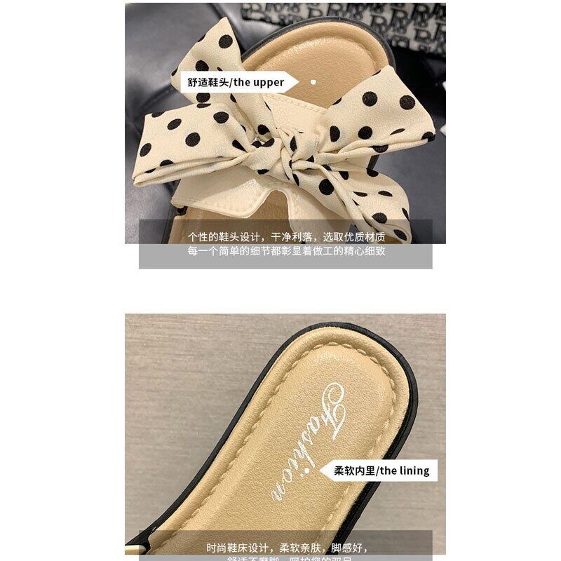 Slippers Women Flat Heels Price Women's Polka Dot Bow Slippers Sweet Casual Outdoor Shoes Sandals Ladies 2021 New Summer Wholesales