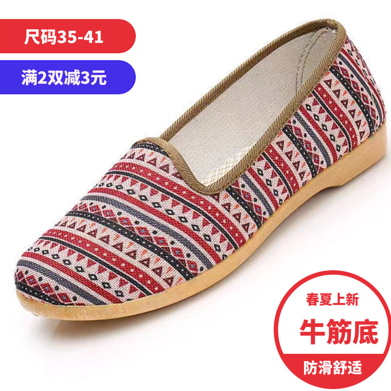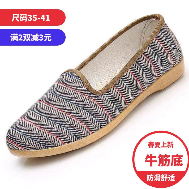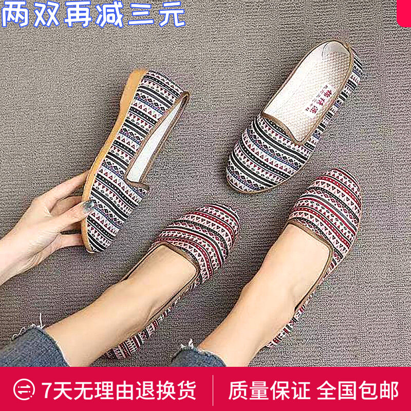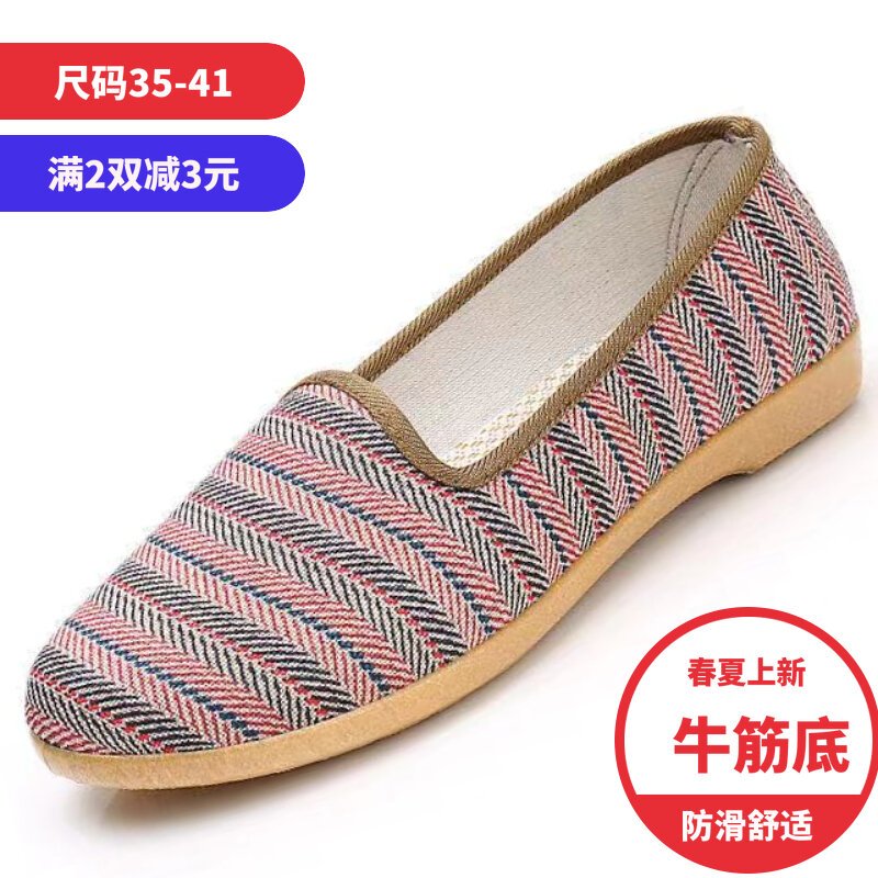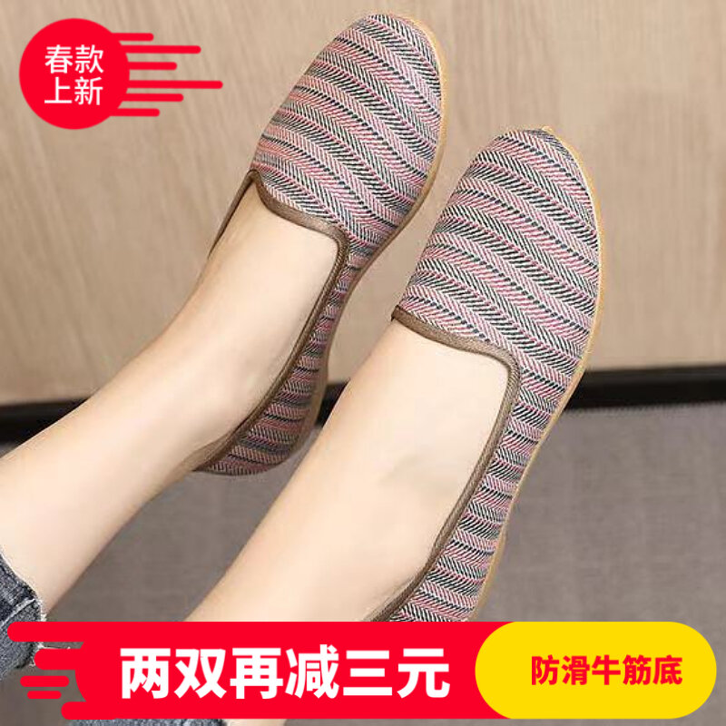 22 Spring and Autumn New Women's Shoes Old Beijing Cloth Shoes Middle-Aged and Elderly Mom Shoes Slip-on Tendon Sole Single-Layer Shoes Non-Slip All-Match