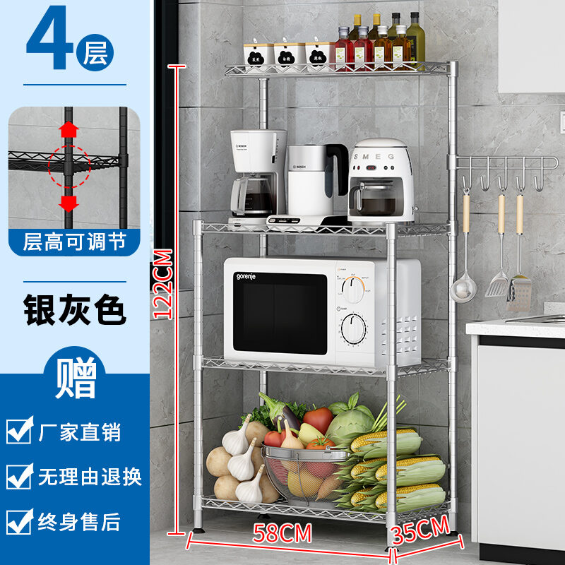 Kitchen Storage Rack Floor-Standing Multi-Layer Microwave Oven Stainless Steel Storage Shelf Bathroom Living Room Storage Rack
