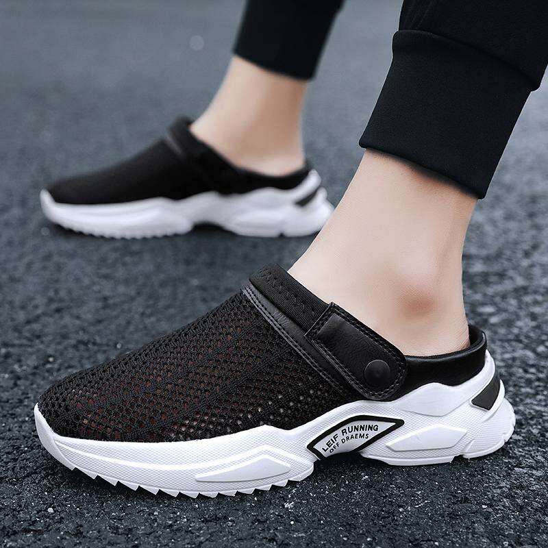 Half Slippers Men's Summer Slippers Lazy Heel-Free Slip-on Mesh Sandals Closed Toe Sandals Trendy Semi Slippers