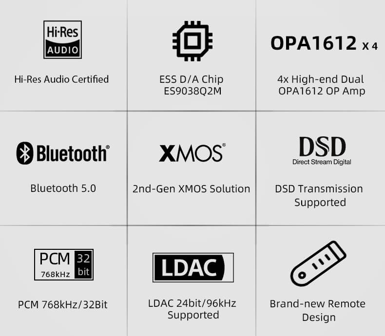 Premium ES9038Q2M Sabre DAC chip.