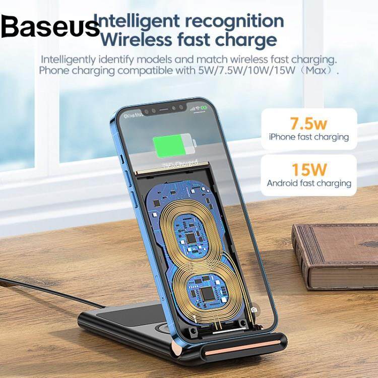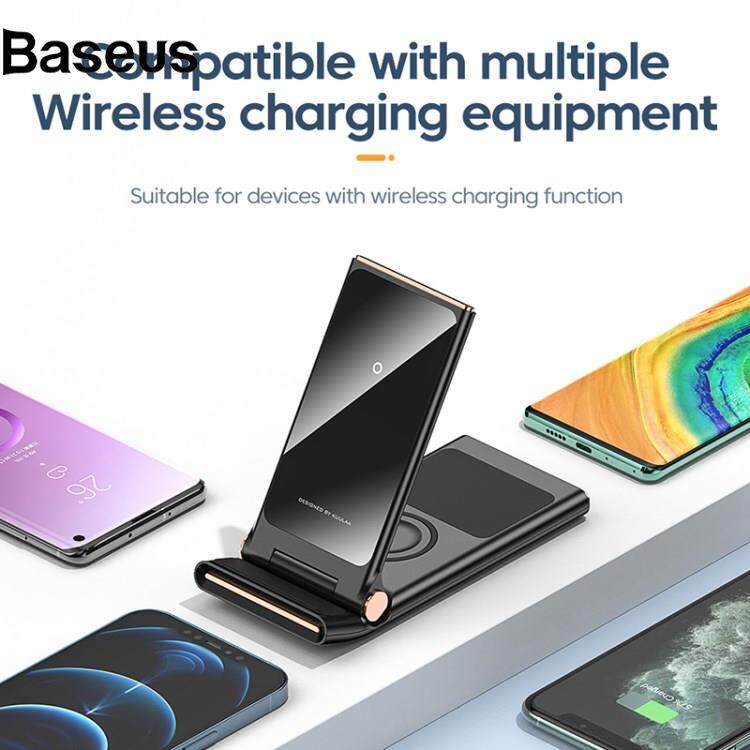 Baseus KUULAA 3 in 1 15W Wireless Charger Mirror Adjustable Phone Stand Folding Charging Dock Multi-function Charging Station for iPhone Apple Watch Airpods Pro