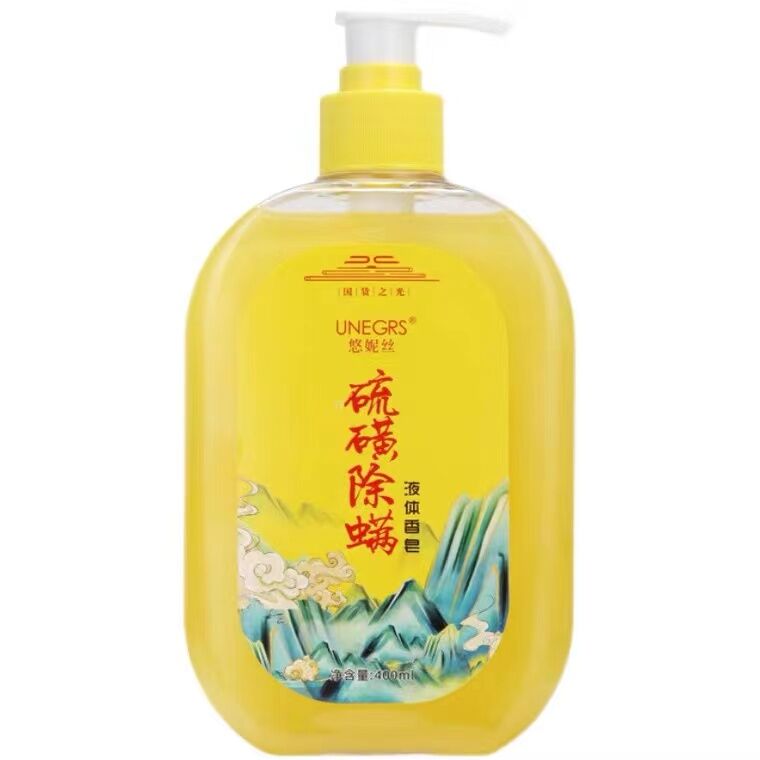 Sulfur Mites Liquid Soap Fragrance Lasting Men's and Women's Face Washing Bath Cleansing Sulfur Antibacterial Soap Shower Gel