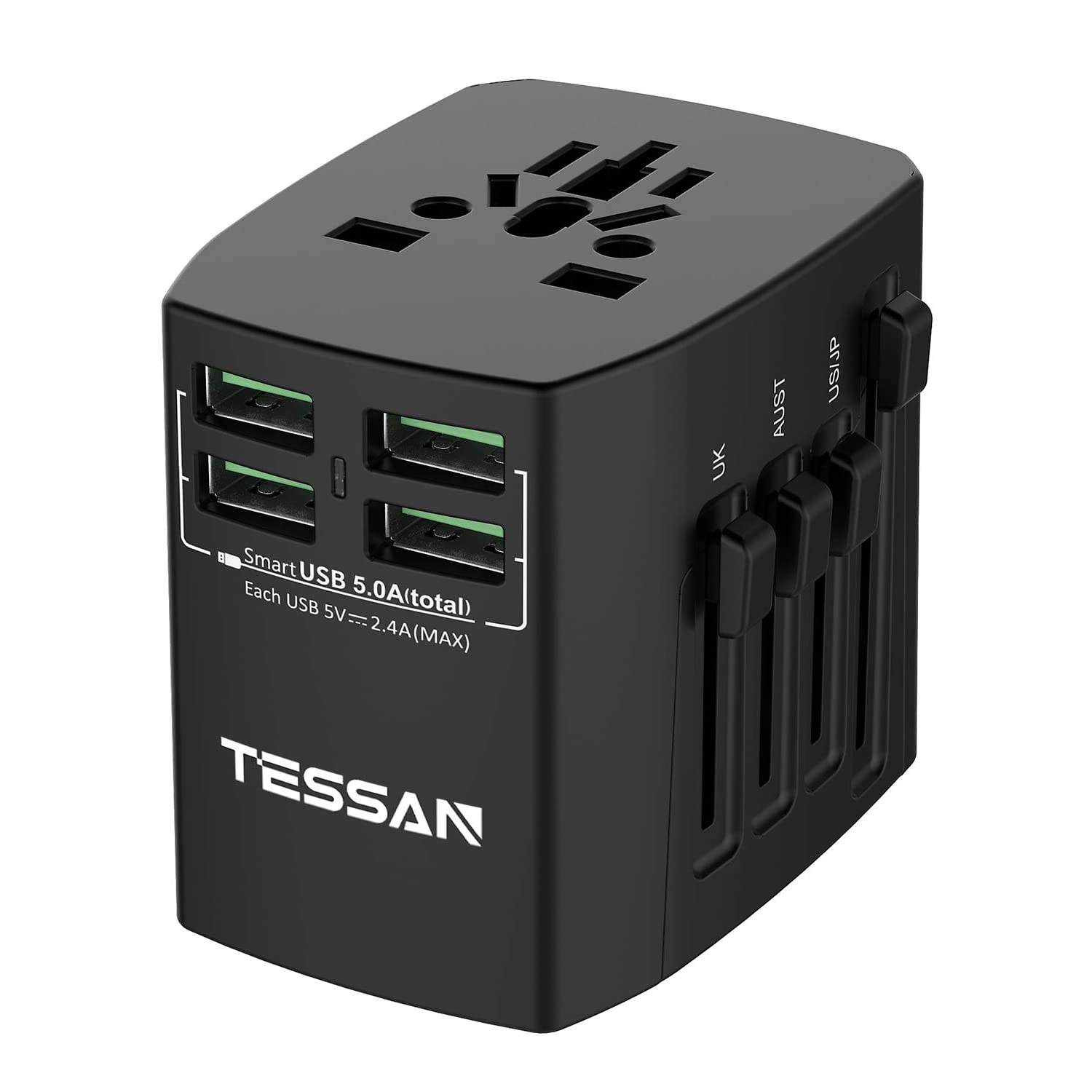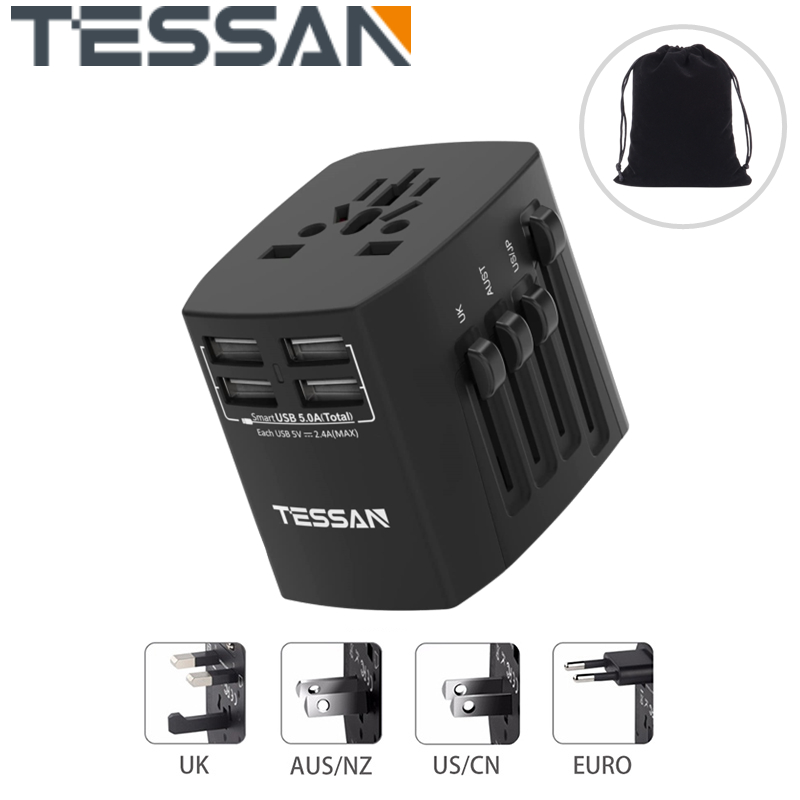 International Travel Adapter with 4 USB Outlets+1 Universal Outlets,TESSAN Universal Travel Adapter European Plug Adaptor Worldwide All in One USB Charger Converter Travel Plug USB Charger Power Adapt