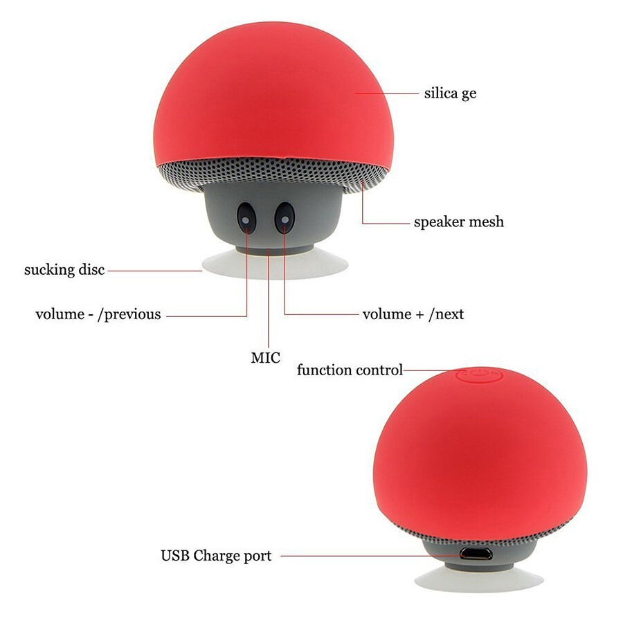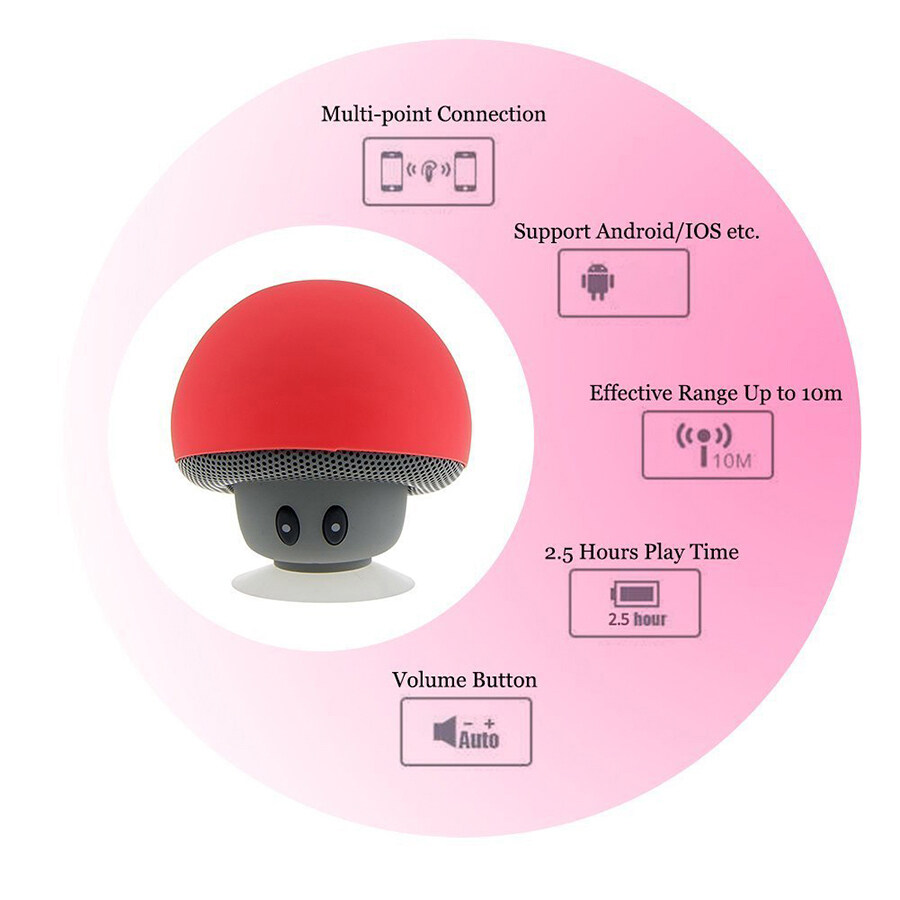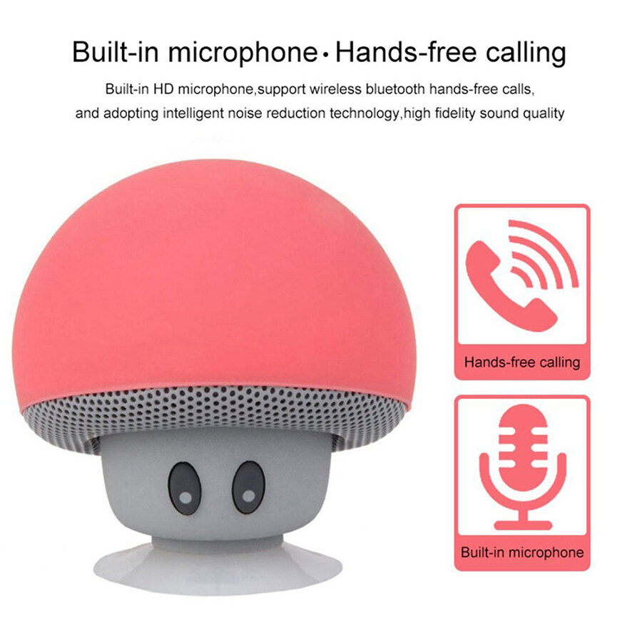Kebidumei Cute Portable Mini Mushroom Wireless Bluetooth Speaker Stereo Subwoofer Silicone Suction Cup Loudspeaker Phone Holder Audio with Mic