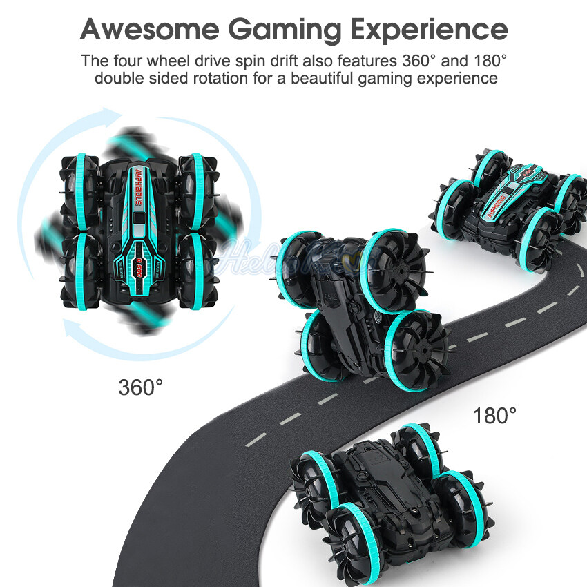 HelloKimi Toy Amphibious Stunt RC Car Remote Control Car 2.4G Water Land 2-in-1 Double Sided Drift Car 360 Degree Rotation Vehicle All Terrain Available Tumbling Driving Children's Electric Toys for C