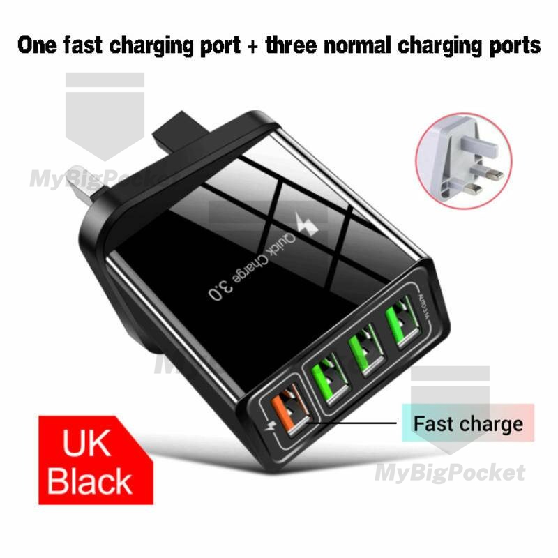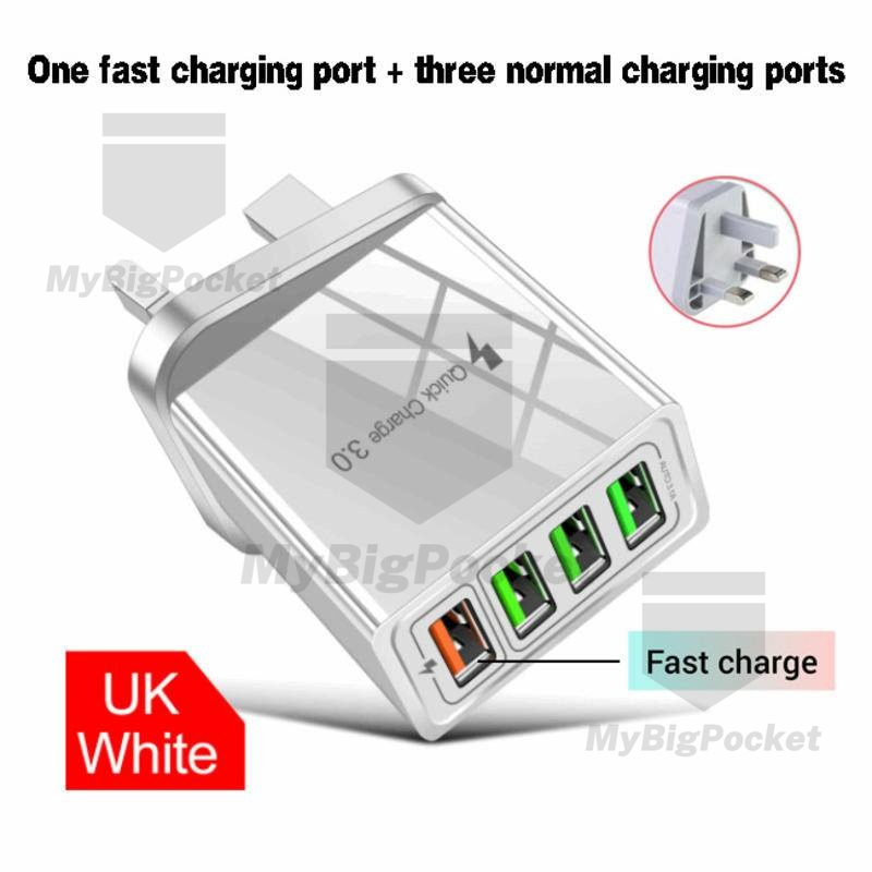 - 4 USB ports, charging 4 devices at the same time.
