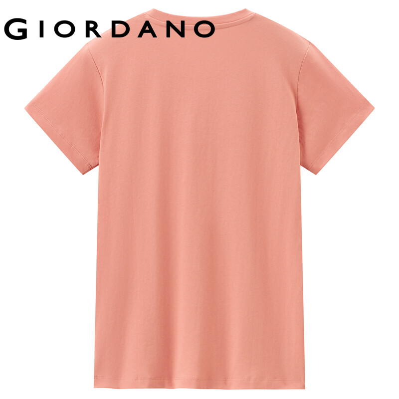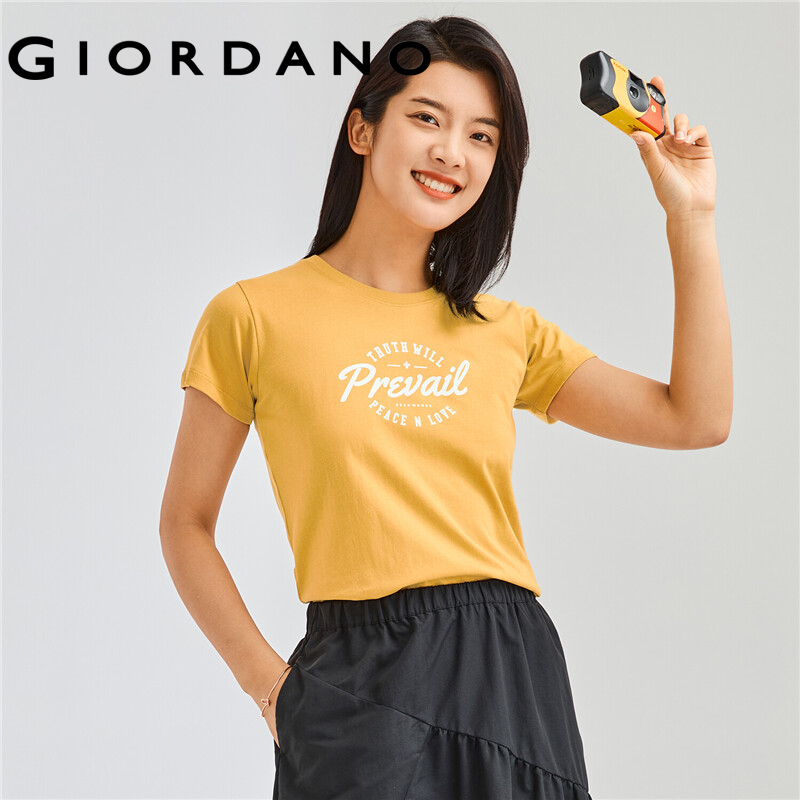 GIORDANO Women T-Shirts Letter Print 100% Cotton Summer Casual T-Shirts Crewneck Short Sleeve Simple Basic T-Shirts 13392201