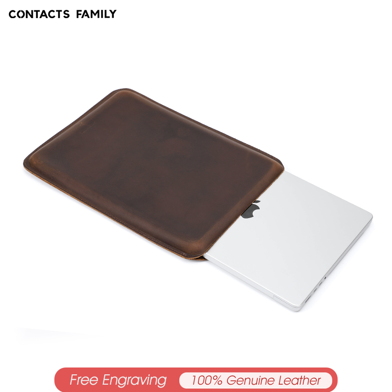Genuine Leather Laptop Sleeve Case for MacBook Pro 14.2/16.2 Inch 2021 Crazy Horse Leather Sleeve Cover Bag