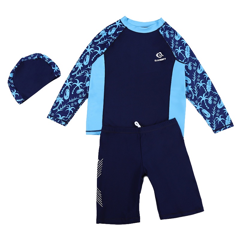 9-14Yrs Youth Kids Swimwear Long Sleeve Top+Pant+Swim Cap Teen Boys Split Swimsuit Plus Size Suit for 30-555KG