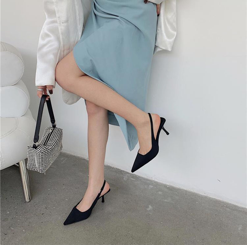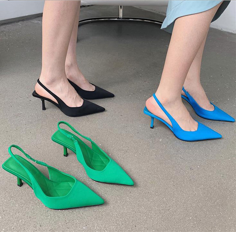 Summer Women Heels Sandals Red Pointed Slingback Sandals Shoes Green Black Purple Kitten Heels Party Prom Ladies Stilettos