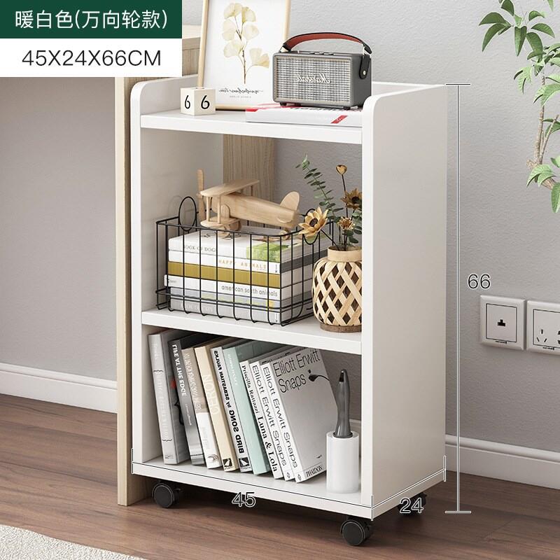 Table-Side Bookshelf Movable Small Wheeled under-Table Storage Cabinet Bedroom Floor Storage Bedside Small Bookcase Narrow Cabinet Short