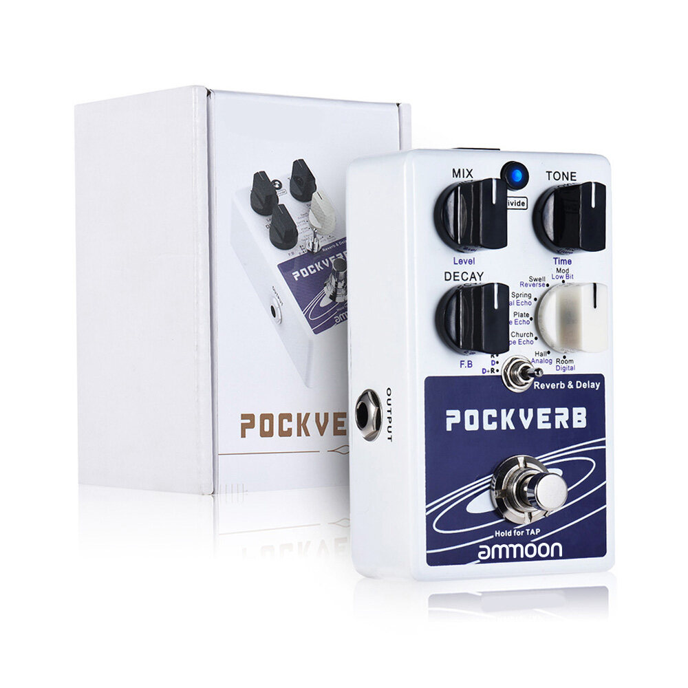 The POCKVERB contains 7 digital reverb effects and 7 delay effects. You can use the reverb and delay effects independently or simultaneously by the toggle switch to get various tones. And the tap tempo function and optional bypass trails make you have yourself a hugely versatile pedal that should be in the toolbox of every musician.