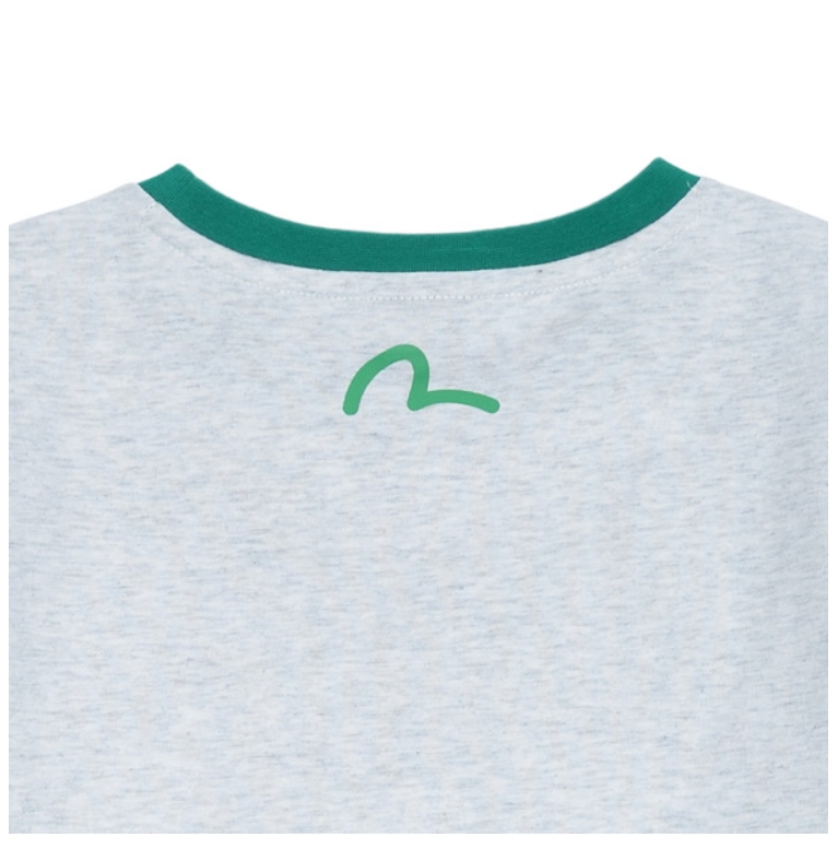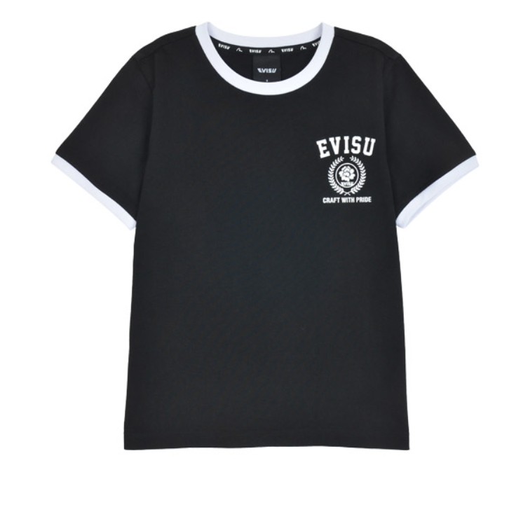 [EVISU KOREA ] 100% Authentic Circular Logo Printed Crop Ringer T-Shirt