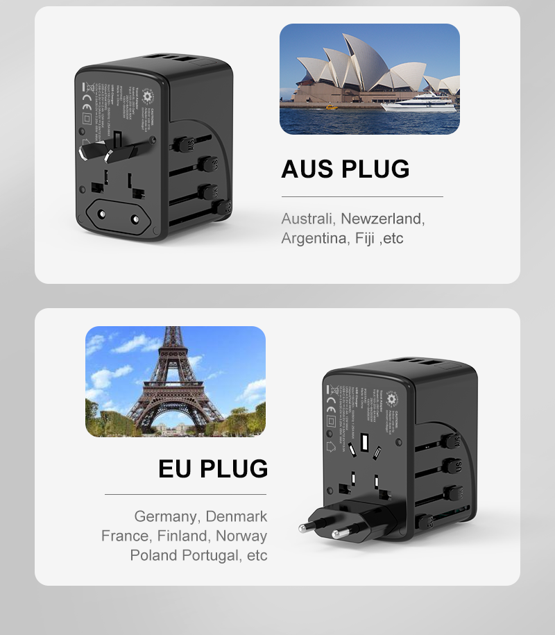 ? 3 USB PORTS including 1 USB-C and 2 USB-A ports. Finally enough USB ports to power all your electronics that require them. No more need to carry multiple plugs. This also sports a multi-region AC outlet for a total 6 device simultaneous charging.
