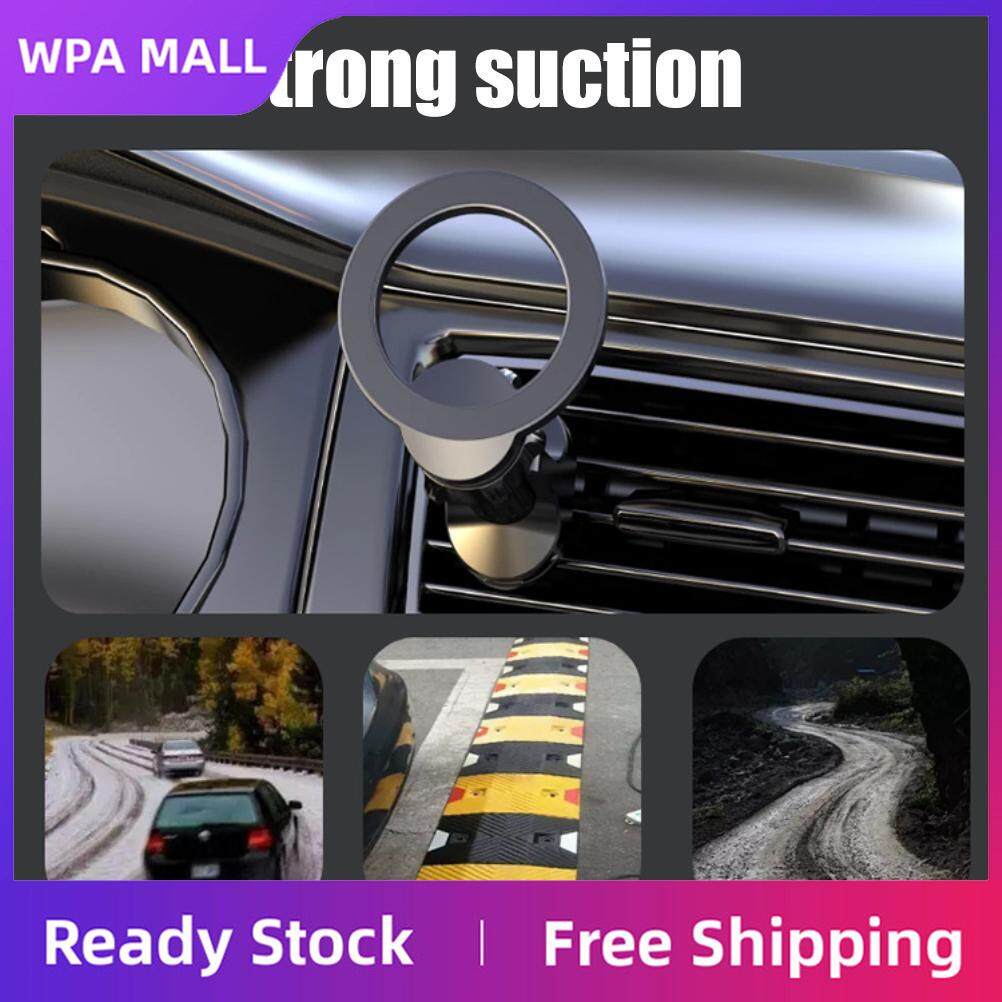 【Compatible for iPhone12 13】Perfectly aligned magnets attach to your compatible for iPhone, this car mount compatible for iPhone magsafe can work directly with your compatible for iPhone 13/12/mini/pro max without additional magnet rings. Just get close and your phone will automatically snap onto the ventilated car mount for your compatible for iPhone (it comes with a suction tab, works with other phones too) and enjoy the pleasure of holding your phone firmly! (Note: This car mount compatible for magsafe is not a charger!)