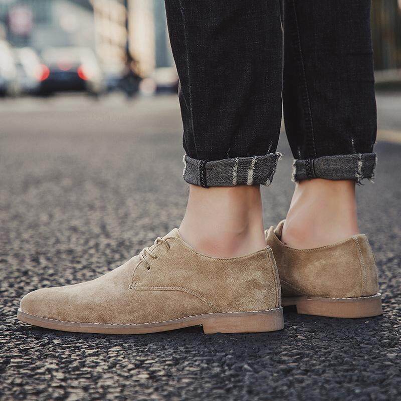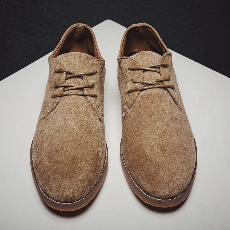 Vikey Plus Size Men Leather Shoes Suede Work Shoe Safety British Style Oxford Fashion Footwear (Black,Khaki,Browm)