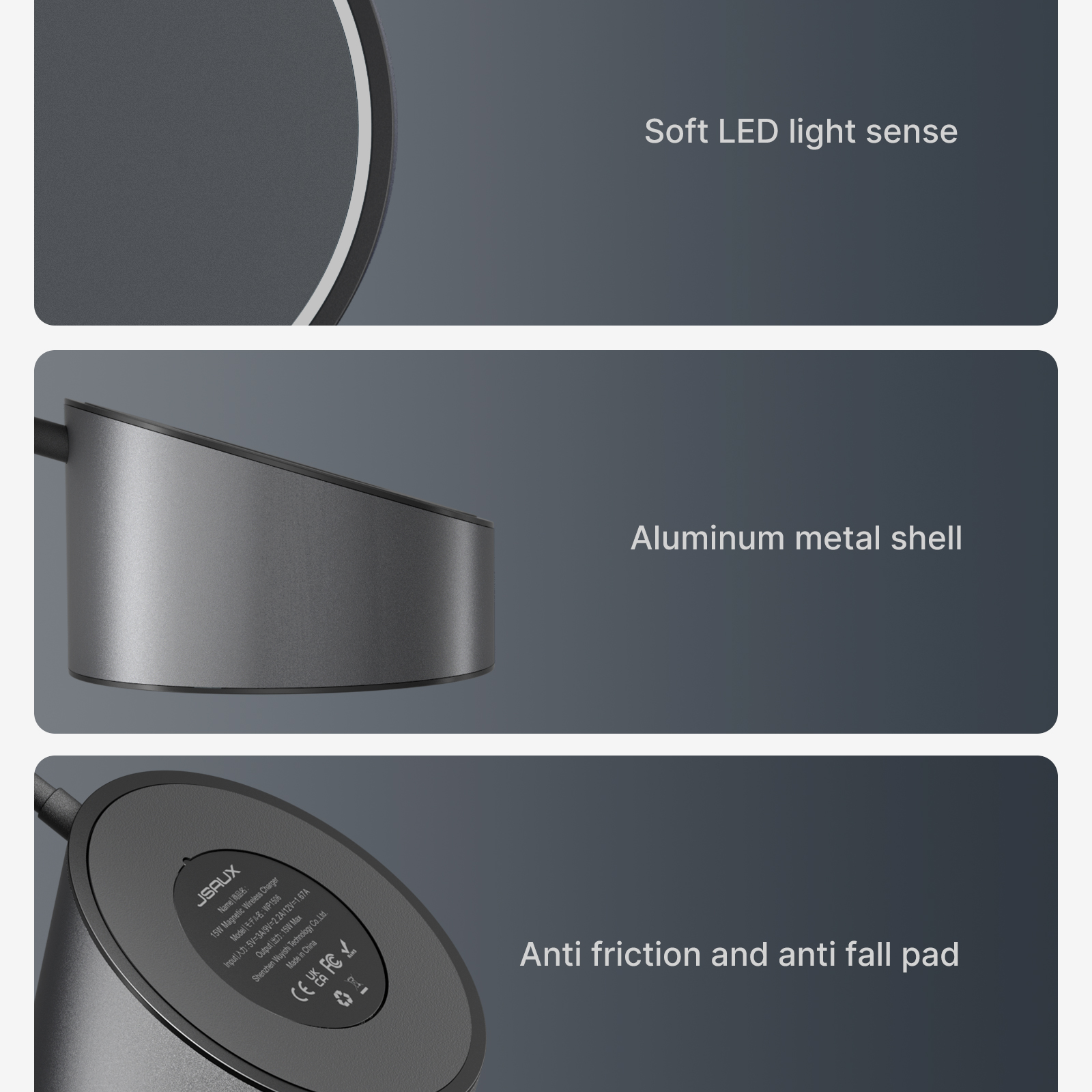 JSAUX 15W Magnetic Wireless Charger Station Compatible with MagSafe Chargers Fast Charging Dock for iPhone 14/13/12 Pro Max Mini, Space Grey