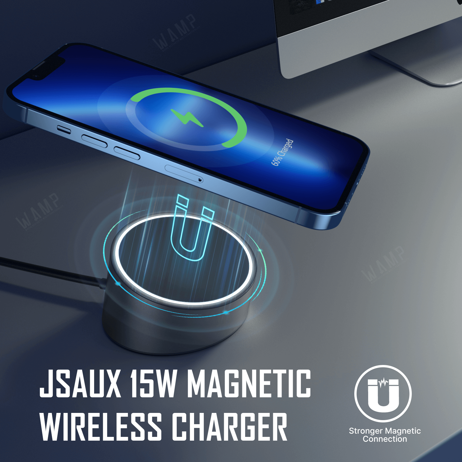 Fiddling with your phone's charging cable can be irritating at times. JSAUX 15W Magnetic Wireless Charger uses a strong magnetic array to ensure your iPhone 14/13/12 is in the perfect position for charging and provide convenient charging for situations when you don’t need a super-fast recharge.