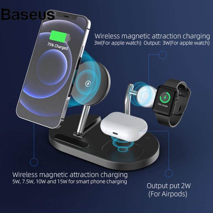 Baseus S20 Desktop Wireless Charging Stand Multifunction Folding Magnetic Charger for iPhone / iWatch / AirPods